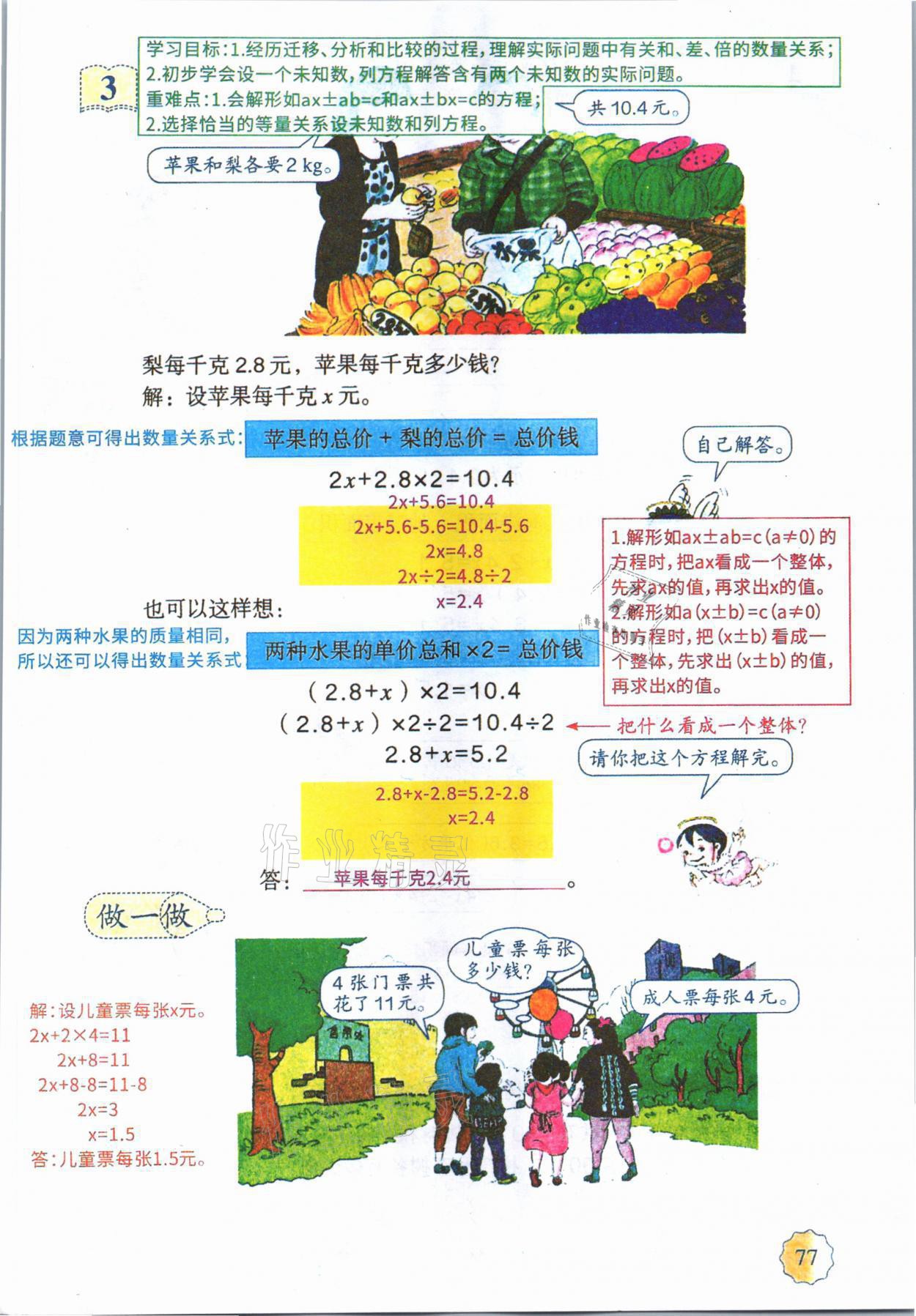 2021年教材课本五年级数学上册人教版参考答案第76页