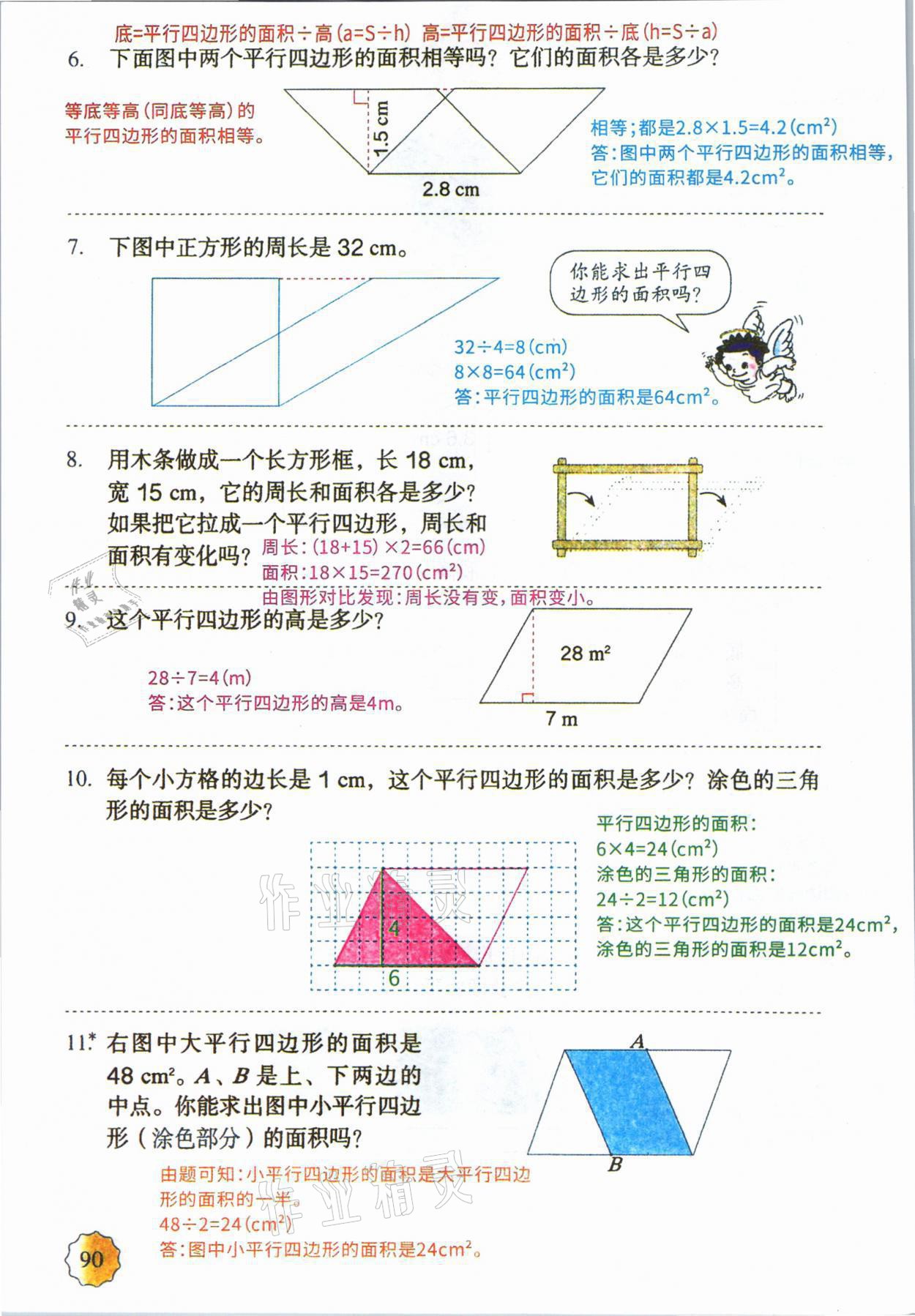 2021年教材课本五年级数学上册人教版参考答案第89页