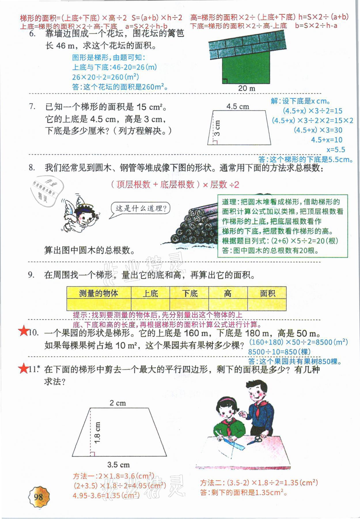 2021年教材课本五年级数学上册人教版参考答案第97页