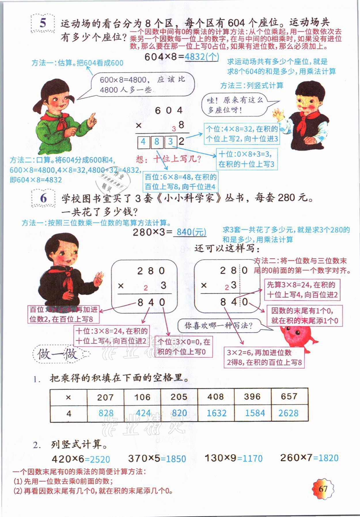 2021年教材课本三年级数学上册人教版参考答案第66页