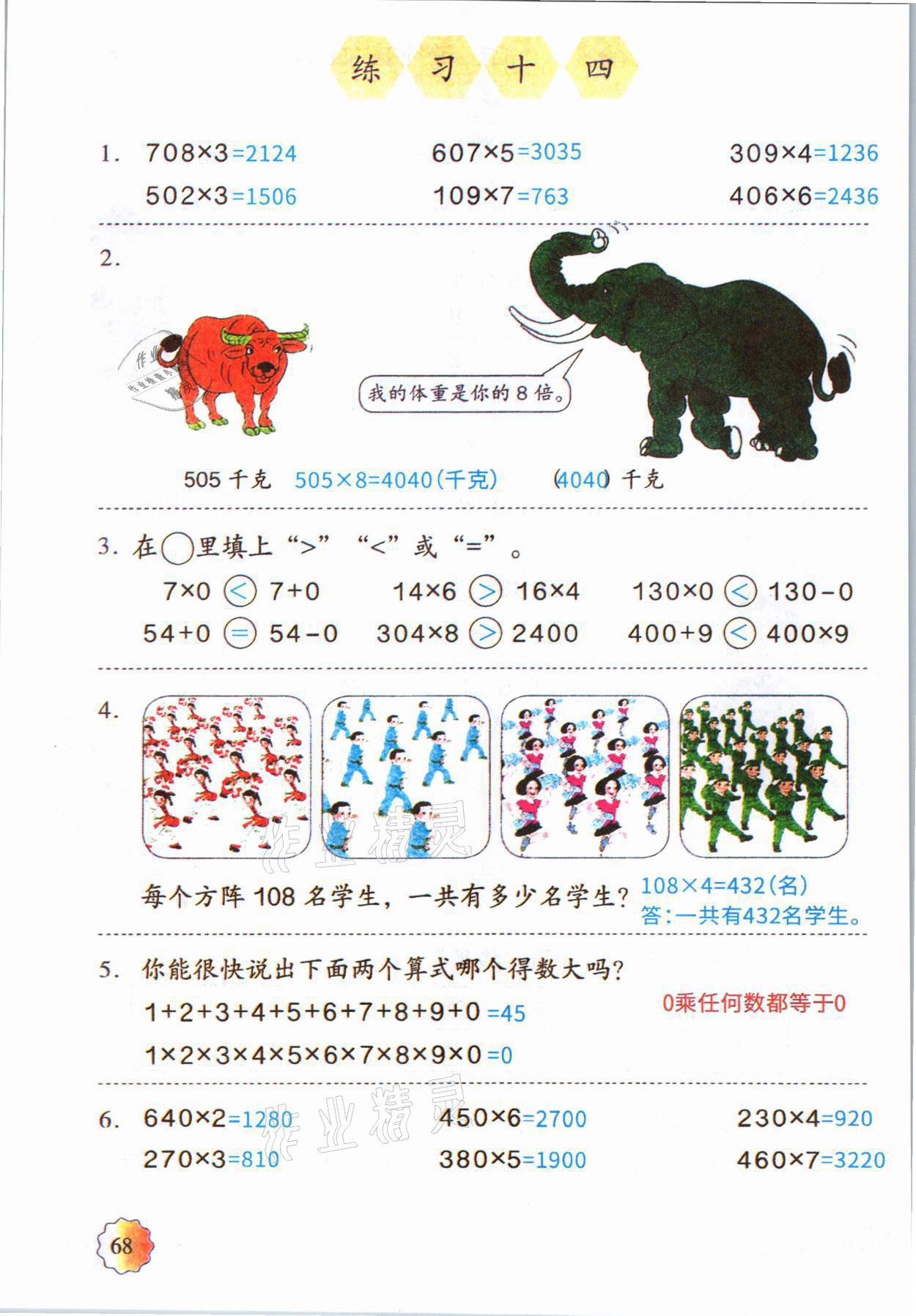 2021年教材课本三年级数学上册人教版参考答案第67页
