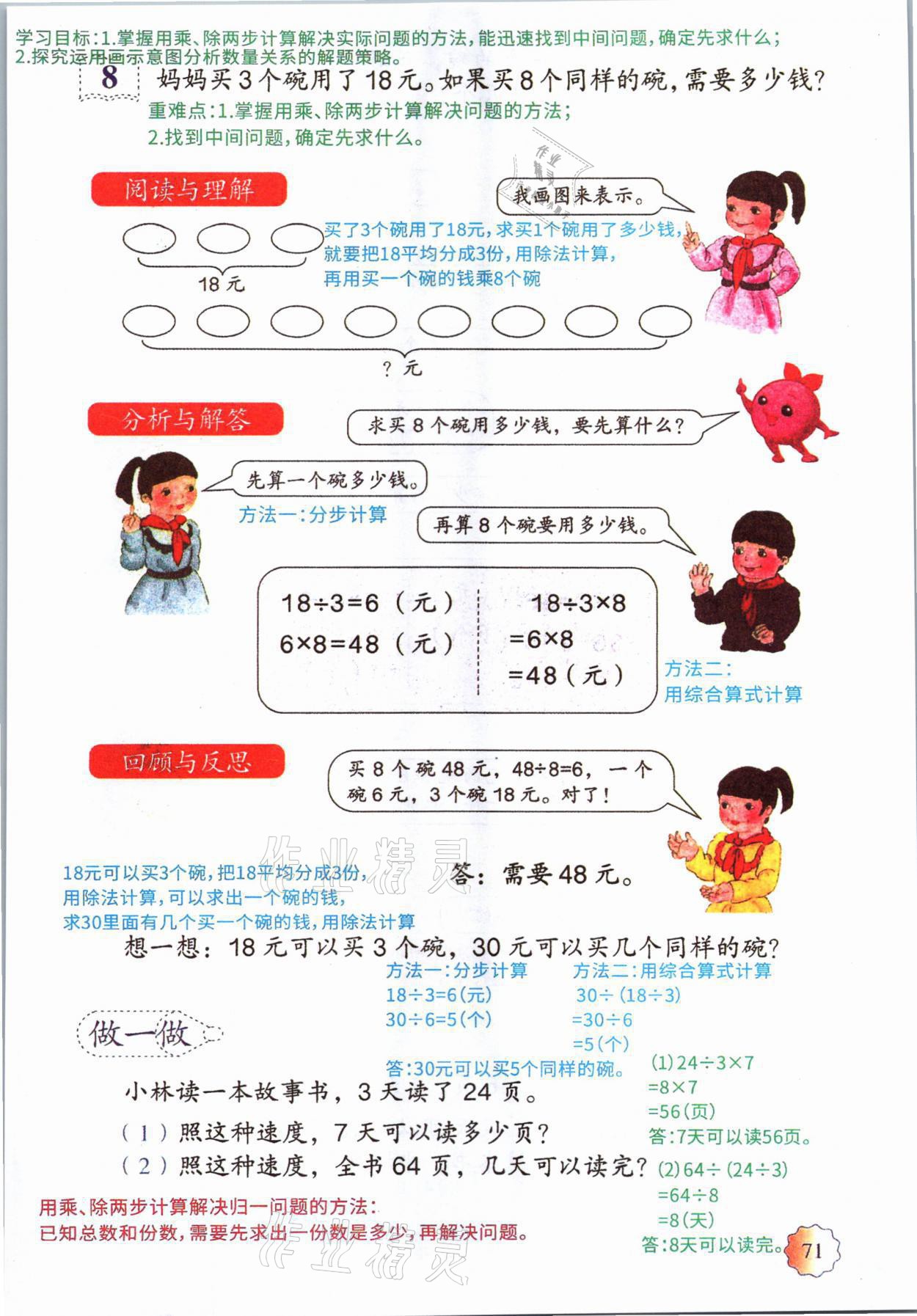 2021年教材课本三年级数学上册人教版参考答案第70页