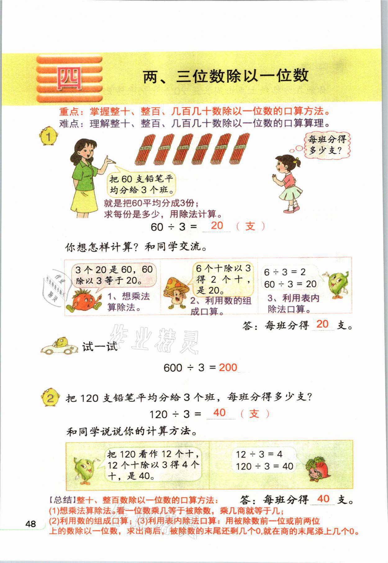 2021年教材课本三年级数学上册苏教版参考答案第48页