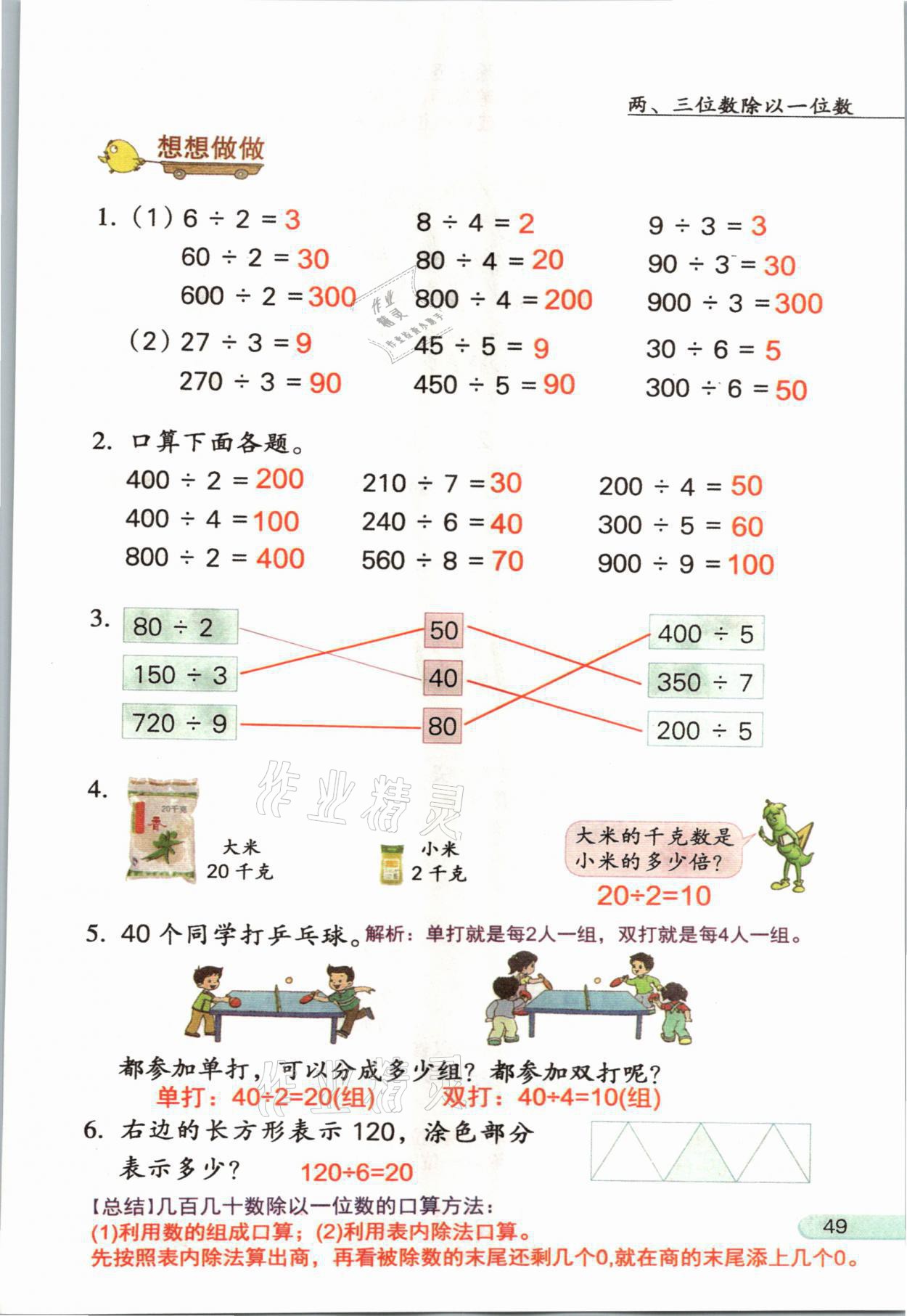 2021年教材课本三年级数学上册苏教版参考答案第49页