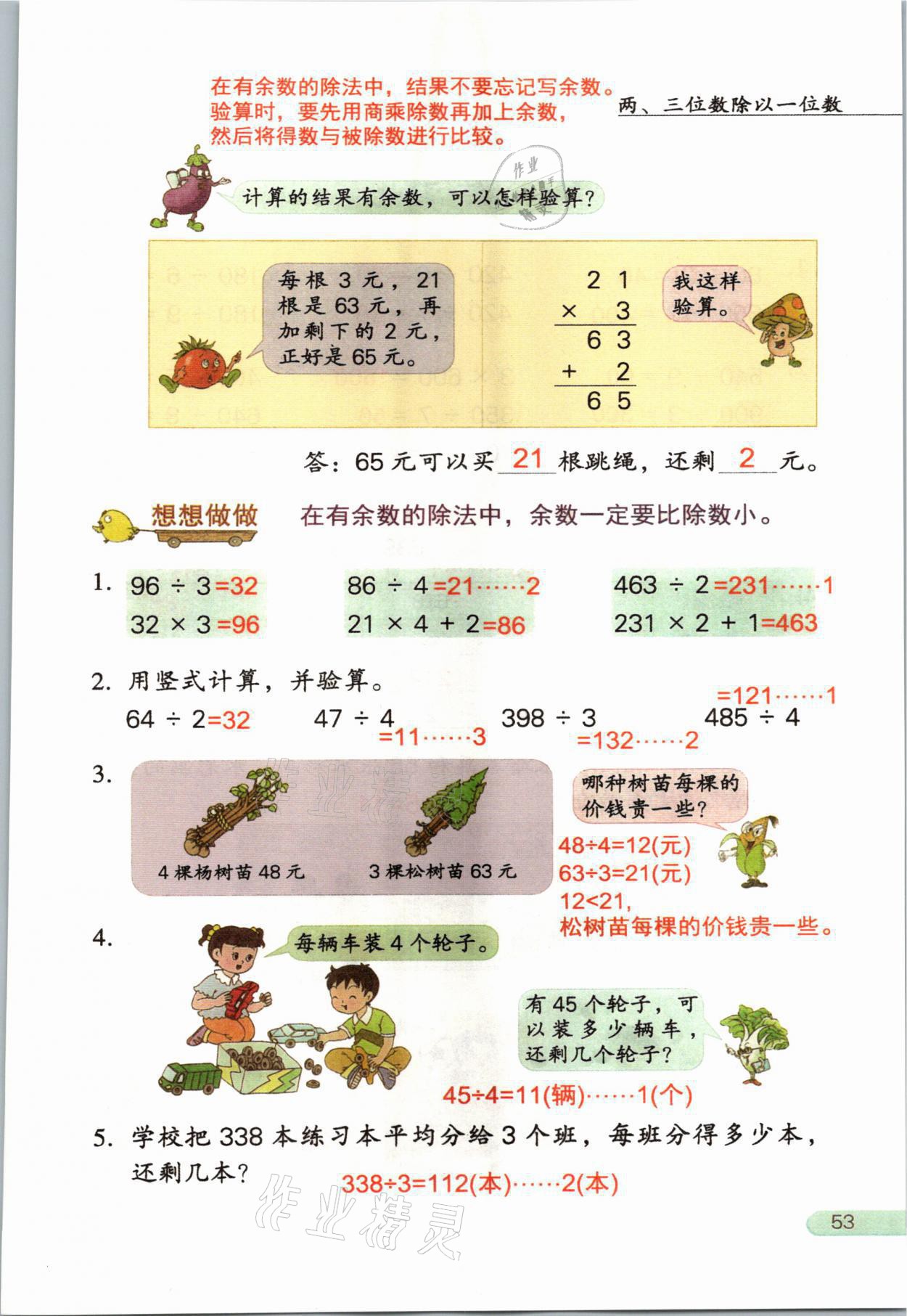 2021年教材课本三年级数学上册苏教版参考答案第53页