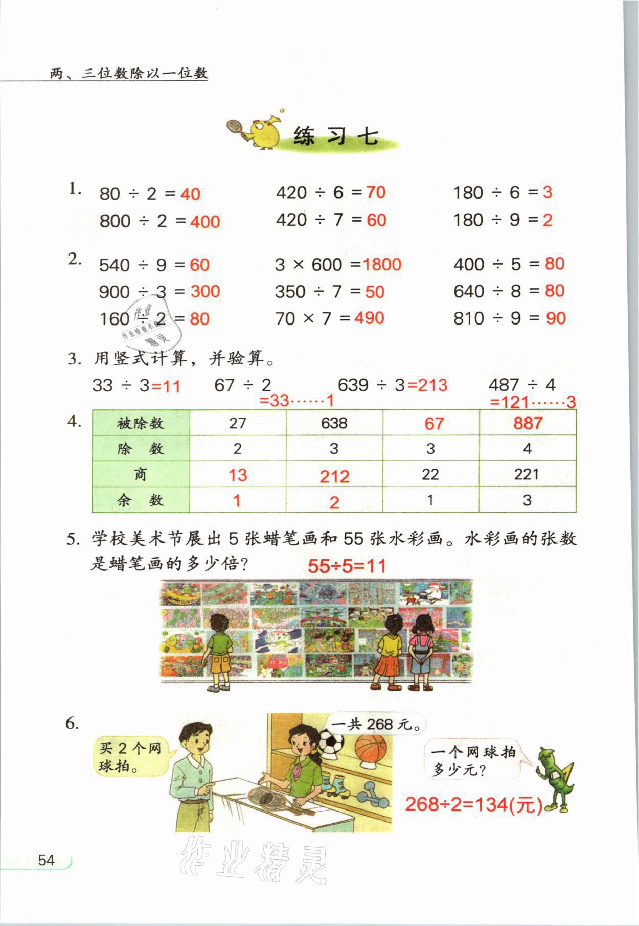 2021年教材课本三年级数学上册苏教版参考答案第54页