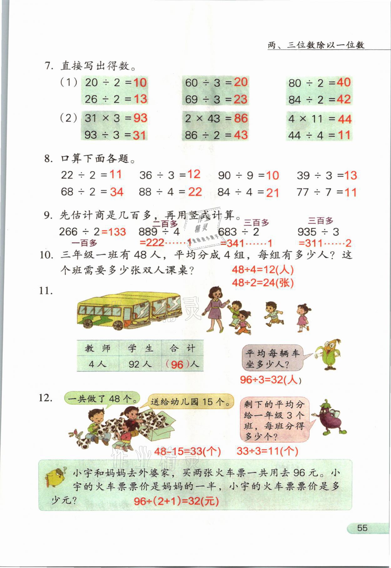 2021年教材课本三年级数学上册苏教版参考答案第55页