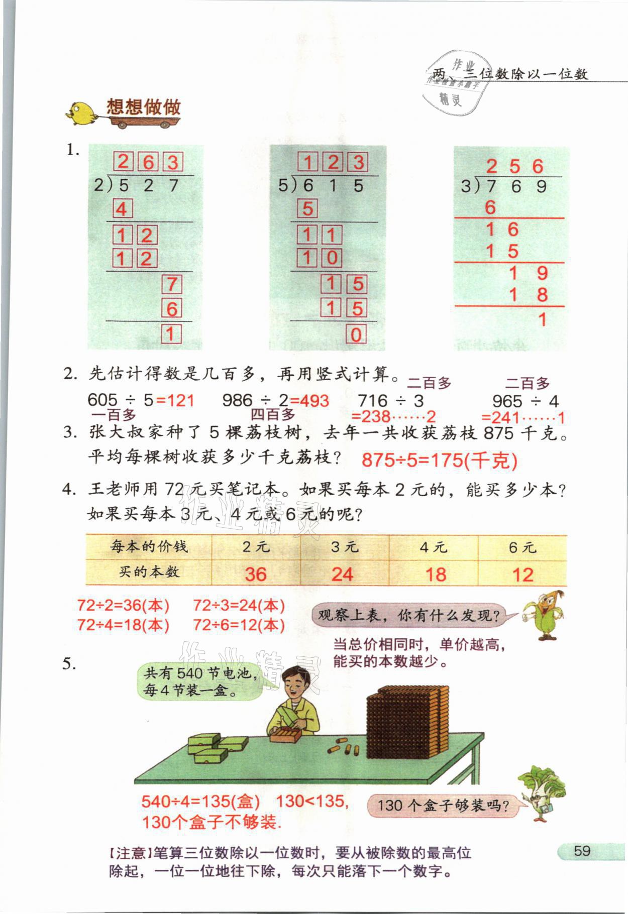 2021年教材课本三年级数学上册苏教版参考答案第59页