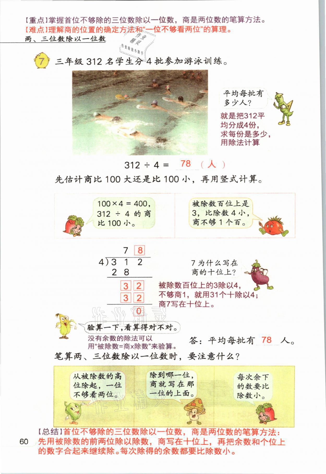 2021年教材课本三年级数学上册苏教版参考答案第60页