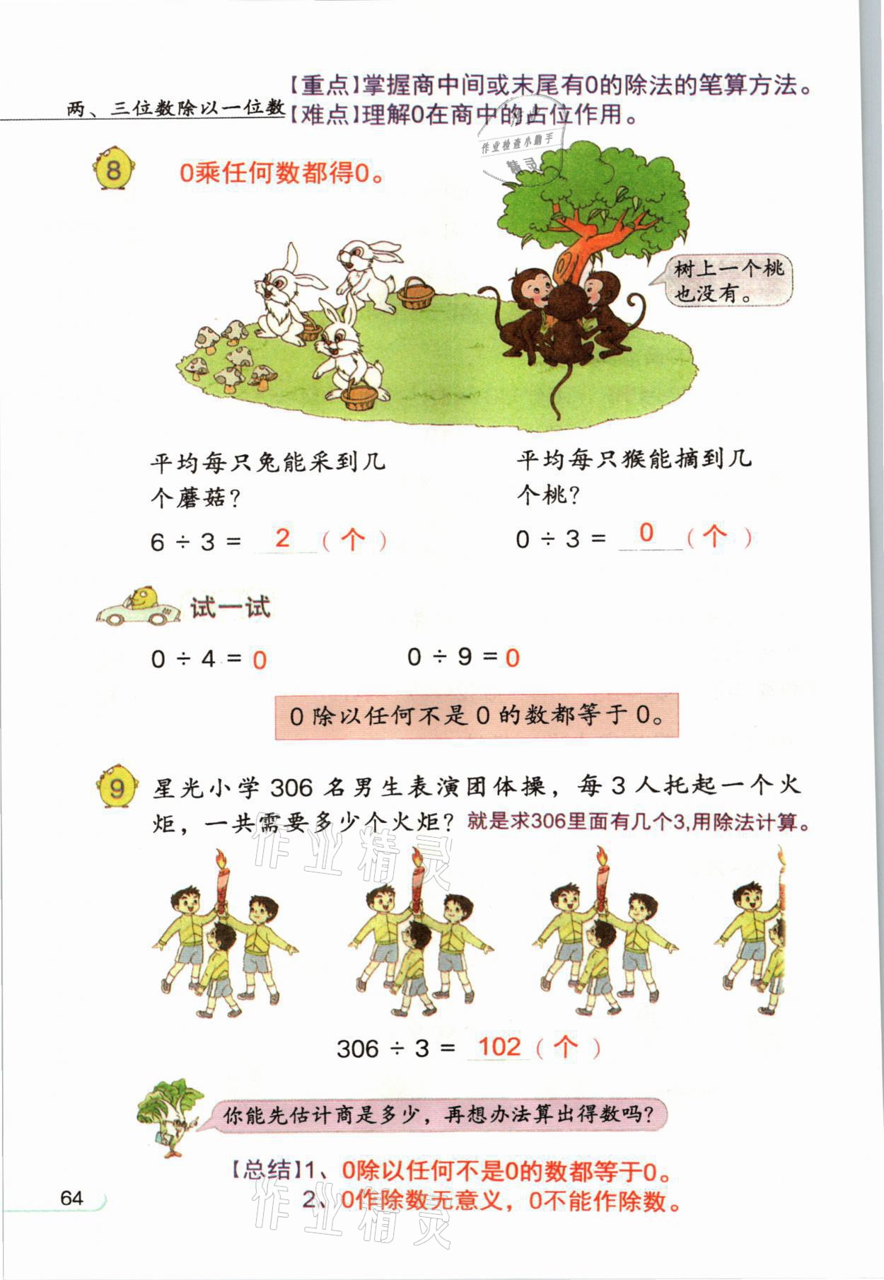 2021年教材课本三年级数学上册苏教版参考答案第64页
