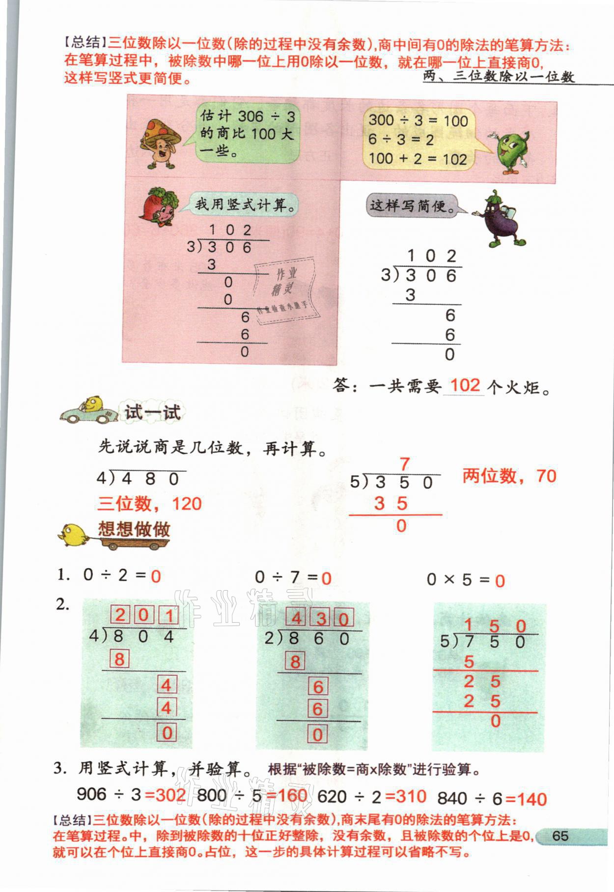 2021年教材课本三年级数学上册苏教版参考答案第65页