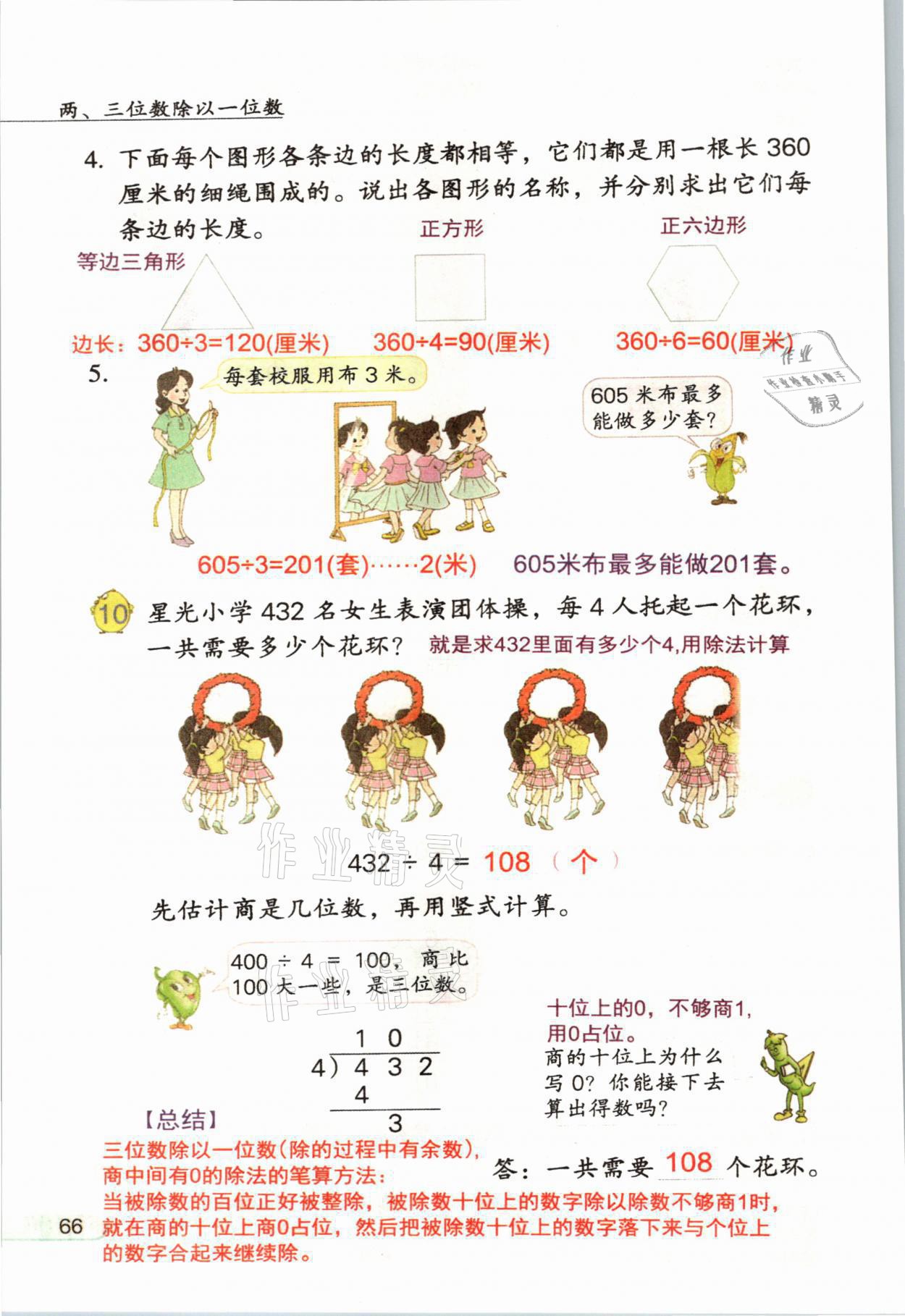 2021年教材课本三年级数学上册苏教版参考答案第66页