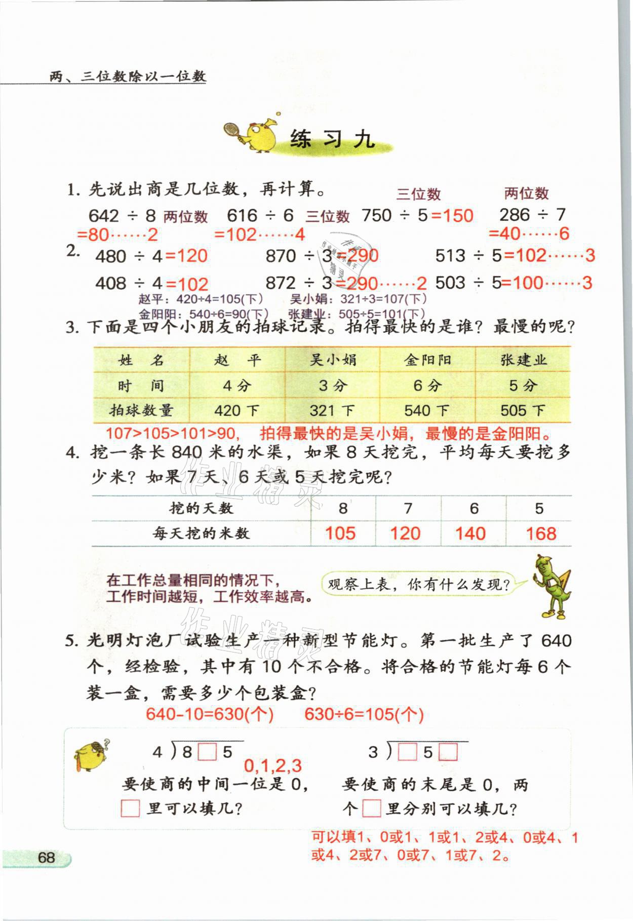 2021年教材课本三年级数学上册苏教版参考答案第68页