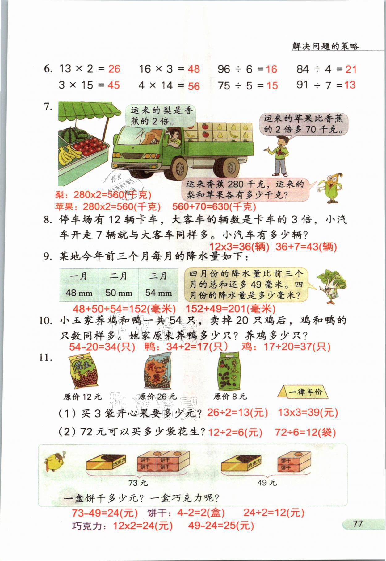 2021年教材课本三年级数学上册苏教版参考答案第77页