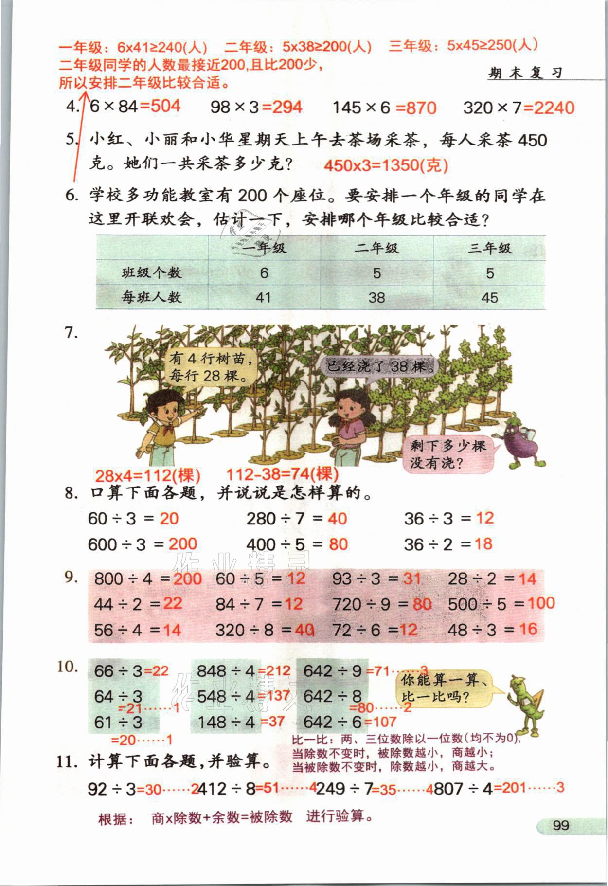 2021年教材课本三年级数学上册苏教版参考答案第99页
