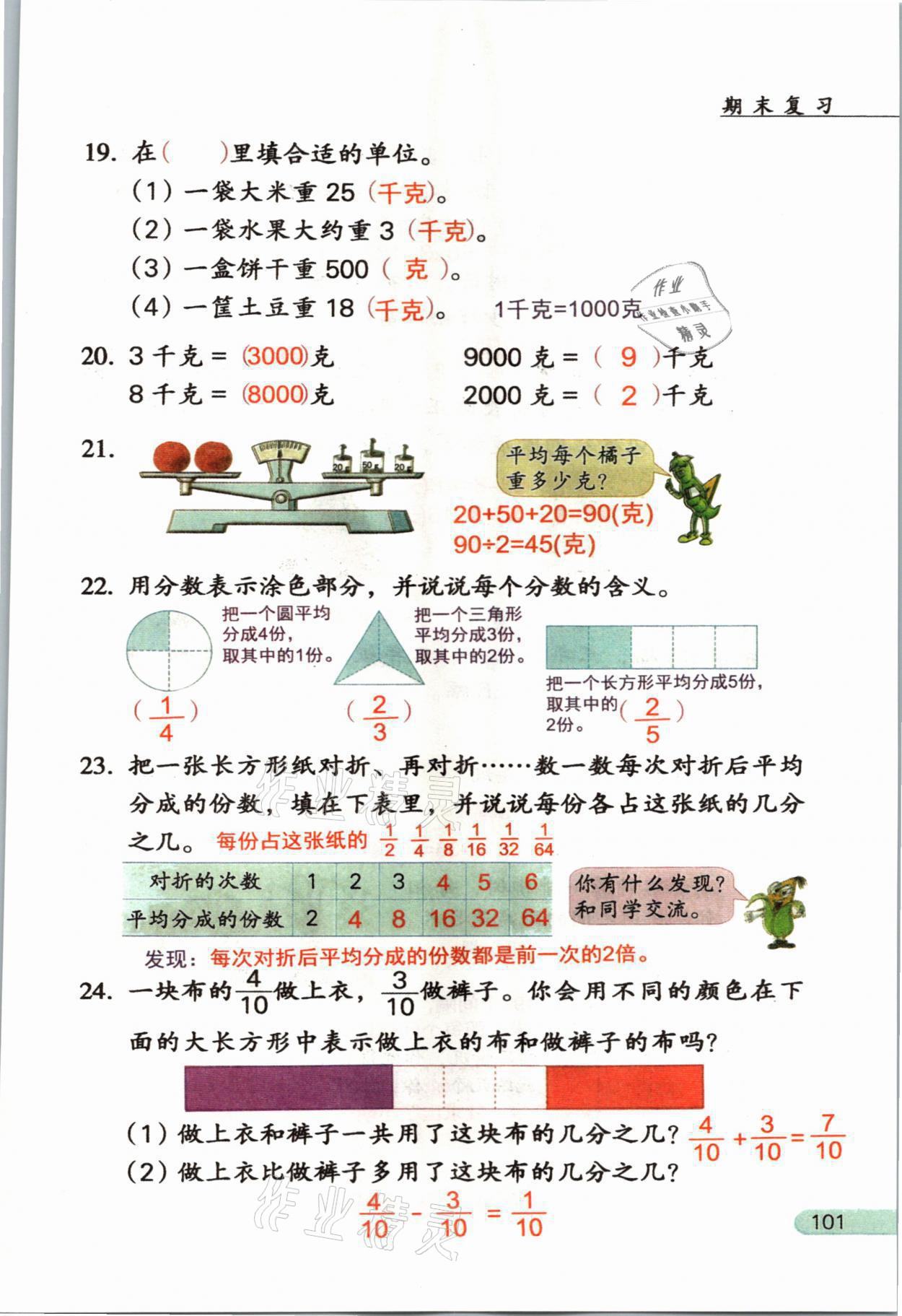 2021年教材课本三年级数学上册苏教版参考答案第101页