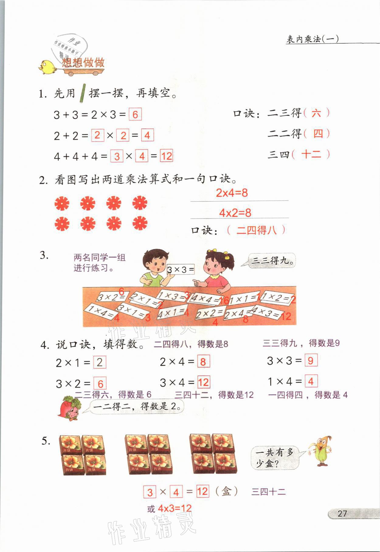 2021年教材课本二年级数学上册苏教版参考答案第27页