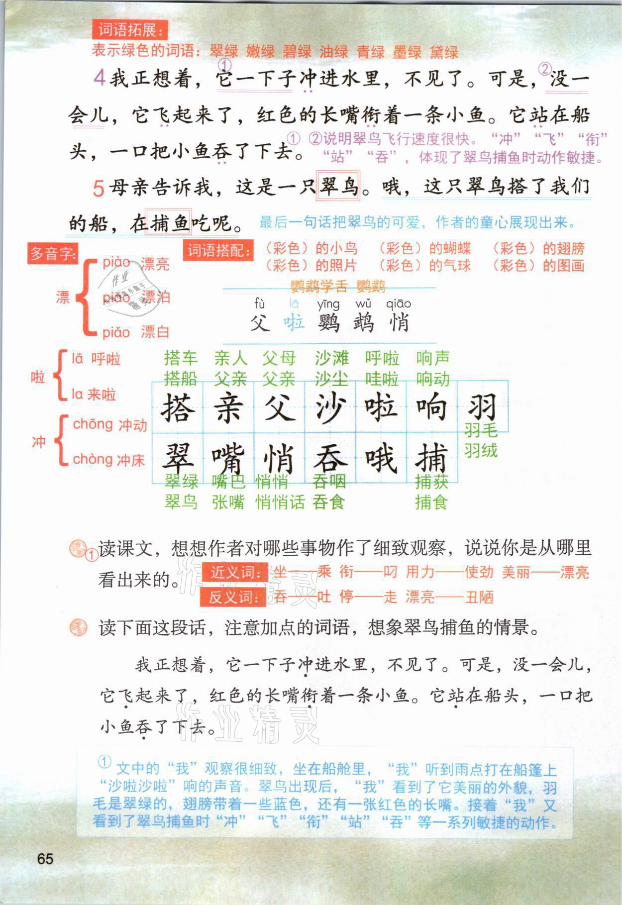 2021年教材课本三年级语文上册人教版参考答案第65页