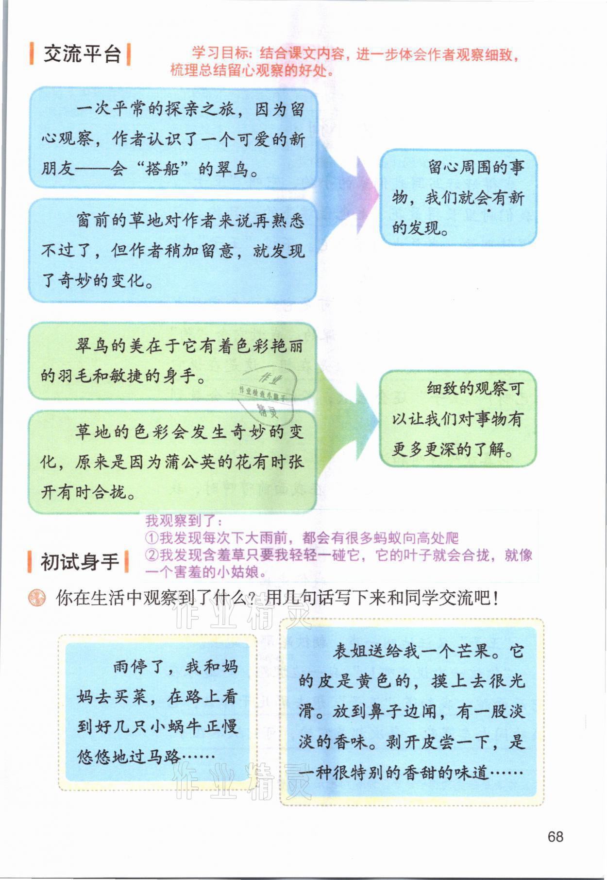 2021年教材课本三年级语文上册人教版参考答案第68页