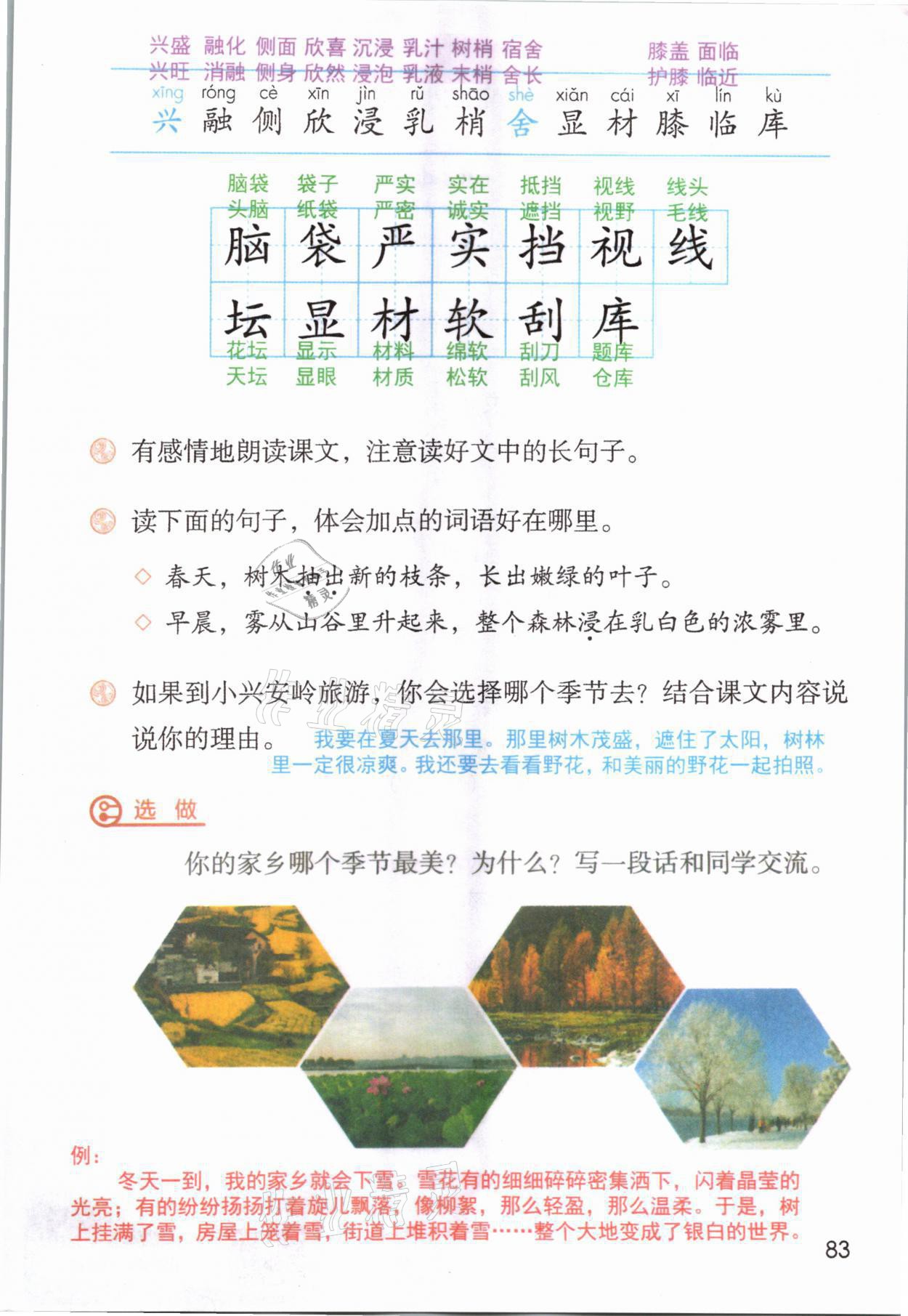 2021年教材课本三年级语文上册人教版参考答案第83页
