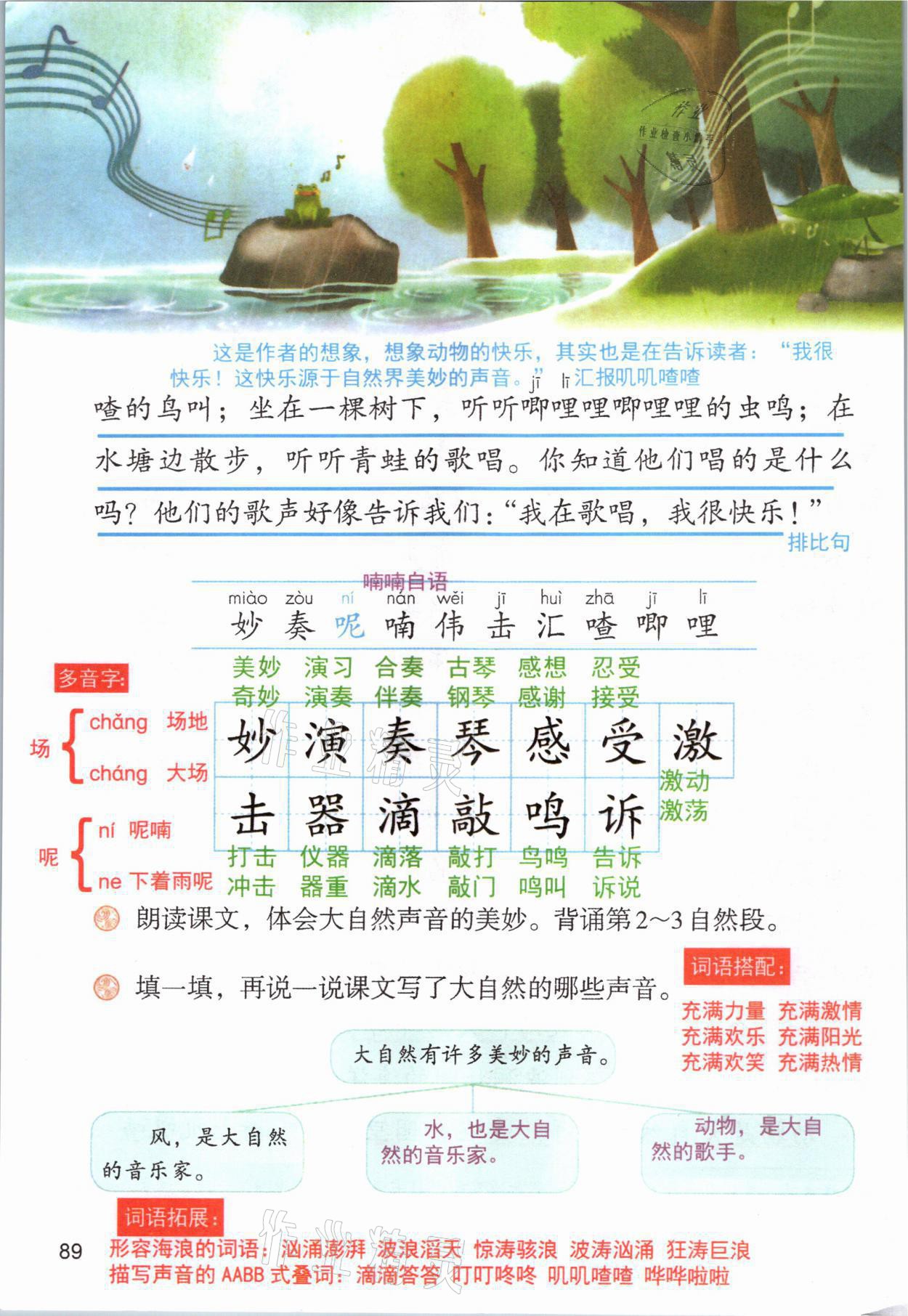 2021年教材课本三年级语文上册人教版参考答案第89页
