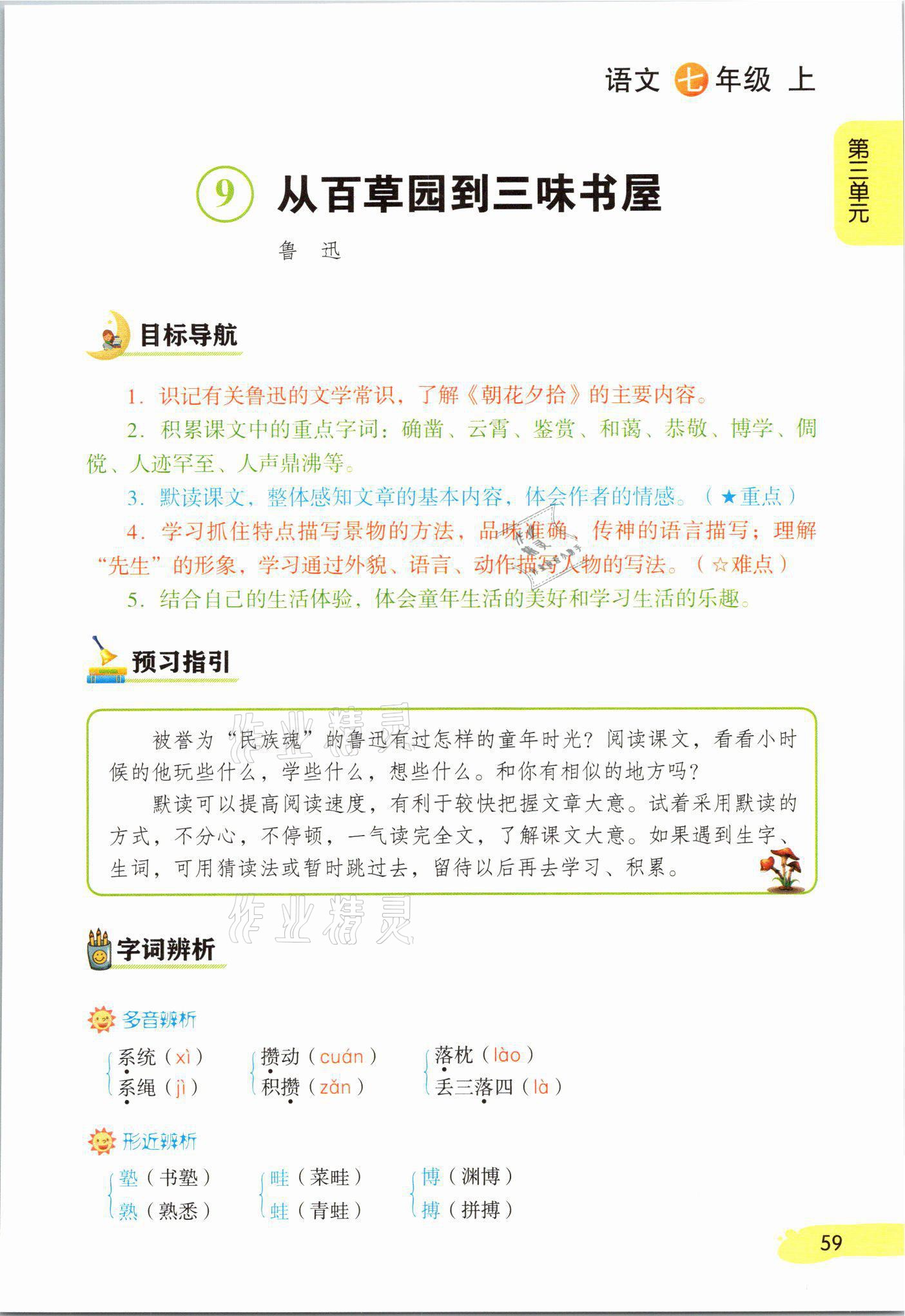 2021年教材课本七年级语文上册人教版参考答案第59页