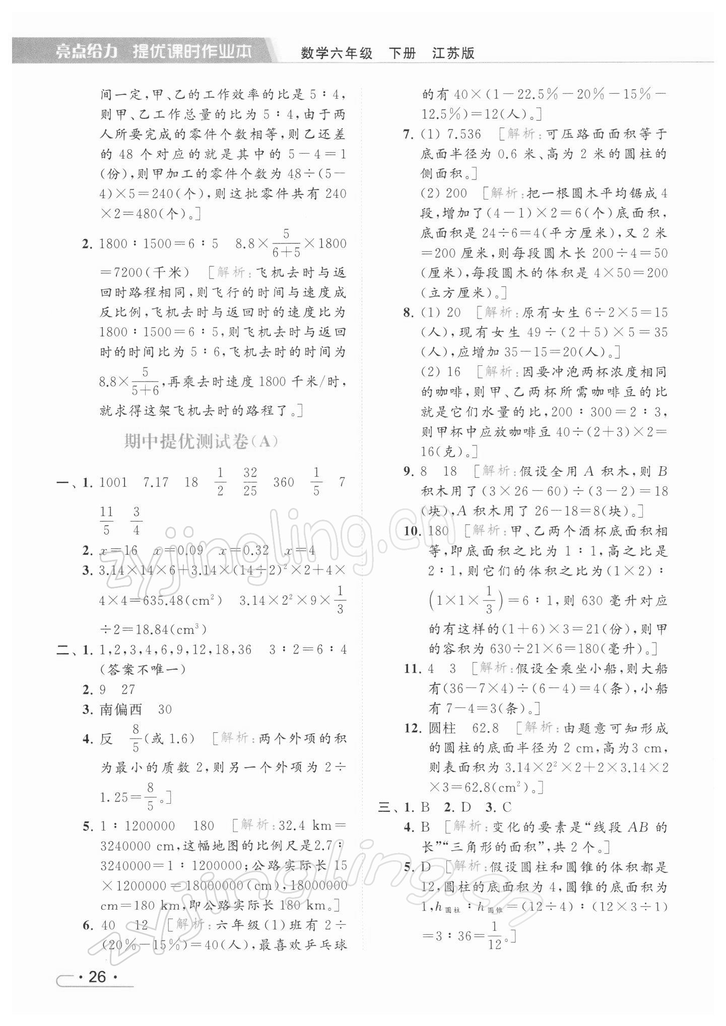 2022年亮点给力提优课时作业本六年级数学下册江苏版参考答案第26页