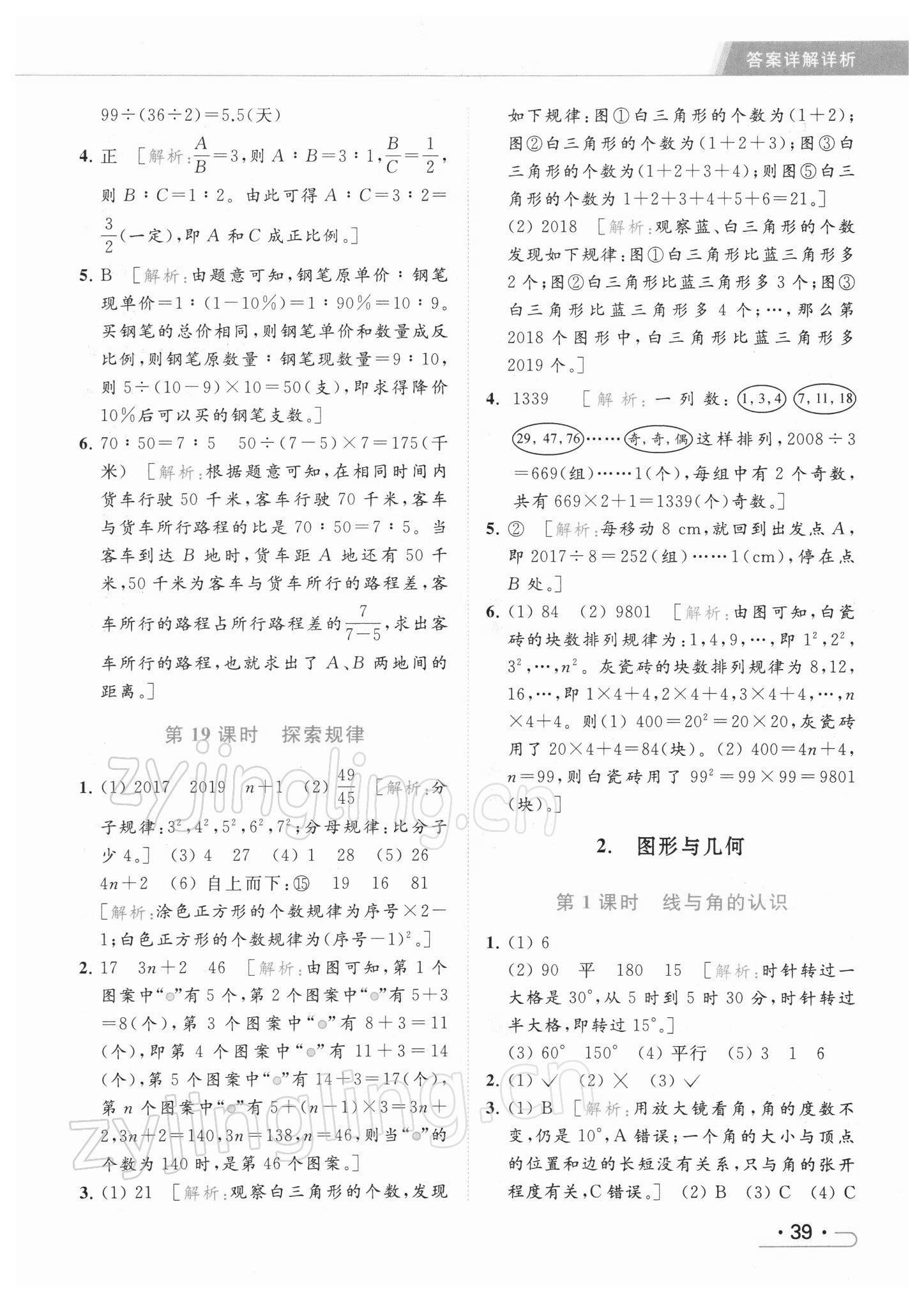 2022年亮点给力提优课时作业本六年级数学下册江苏版参考答案第39页