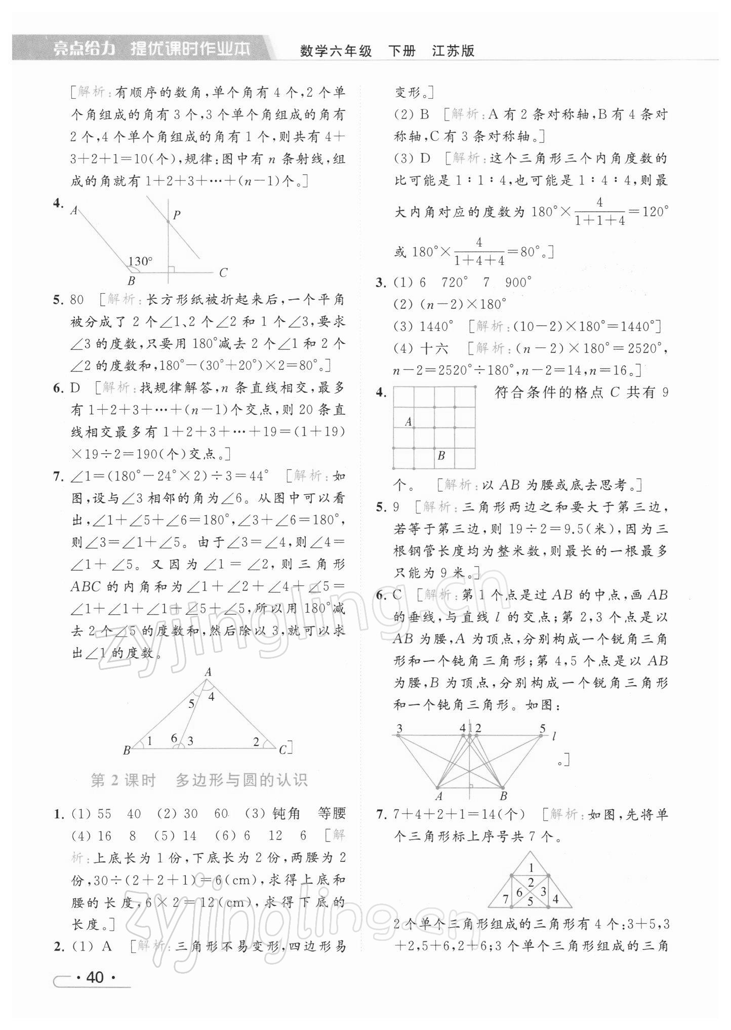 2022年亮点给力提优课时作业本六年级数学下册江苏版参考答案第40页