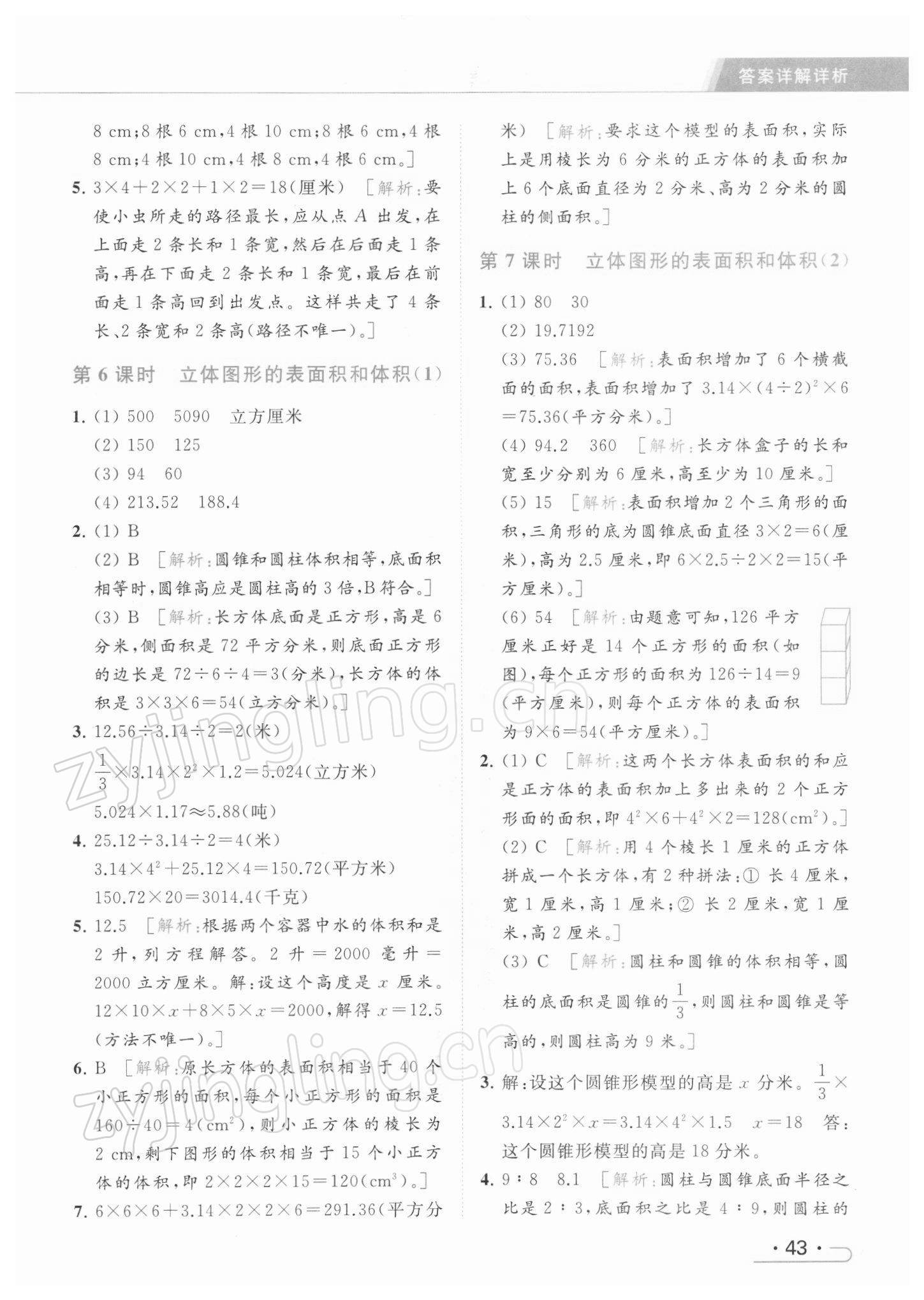 2022年亮点给力提优课时作业本六年级数学下册江苏版参考答案第43页