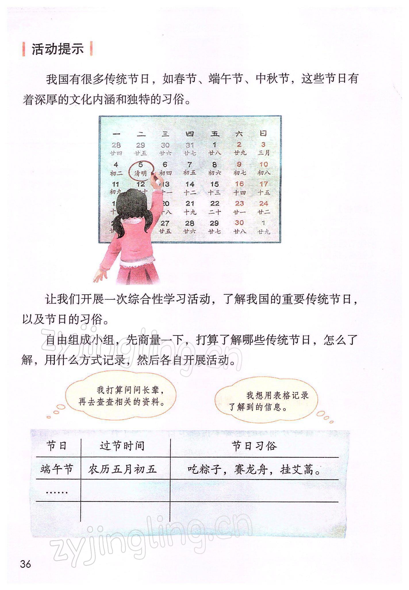 2022年教材课本三年级语文下册人教版参考答案第36页