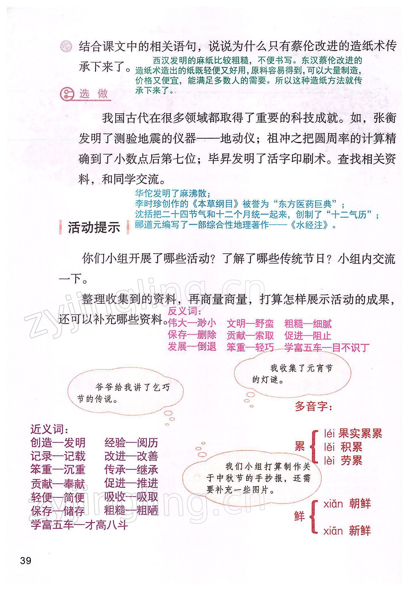 2022年教材课本三年级语文下册人教版参考答案第39页