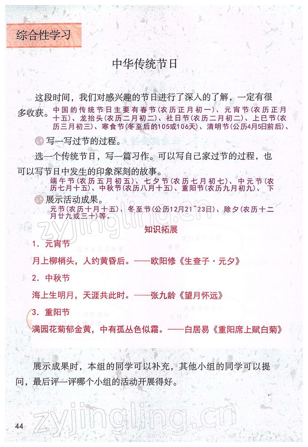 2022年教材课本三年级语文下册人教版参考答案第44页
