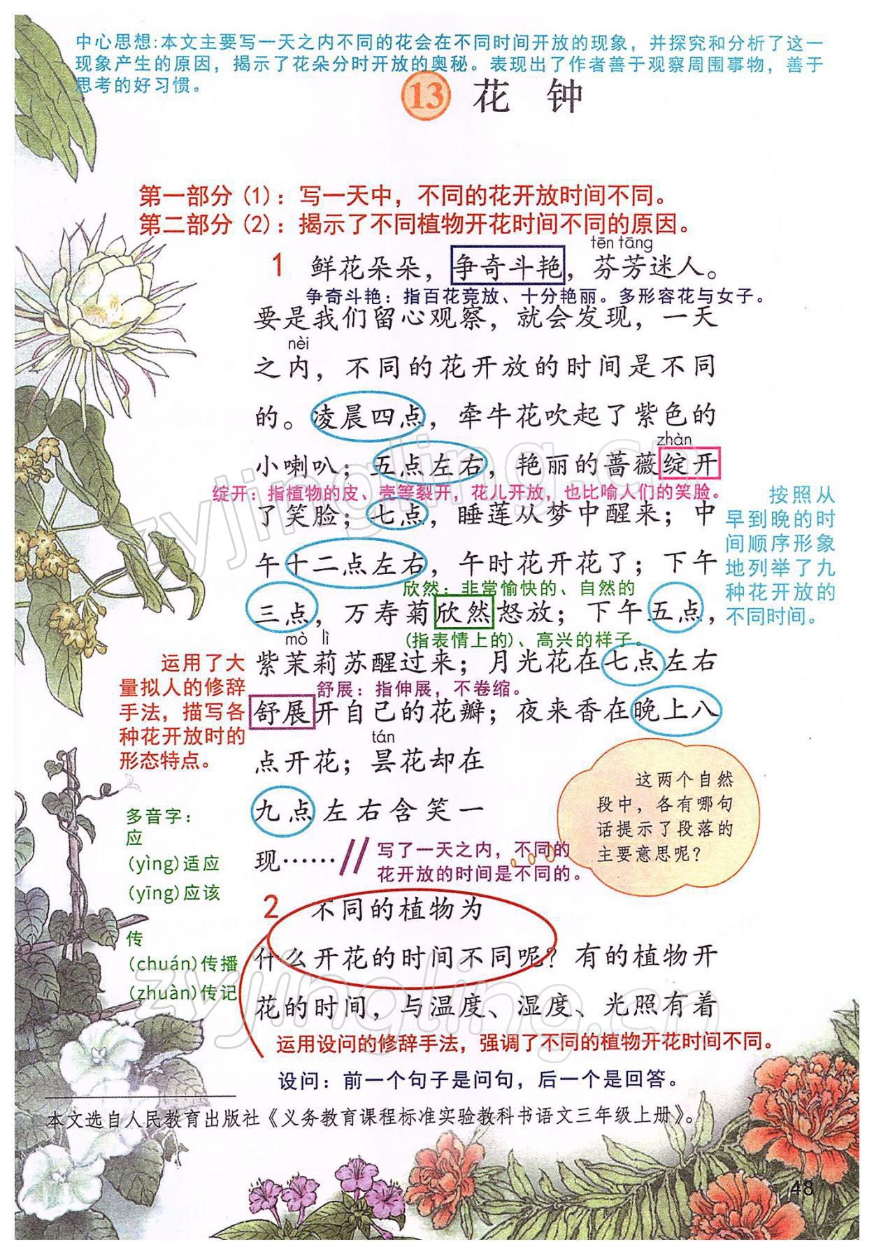 2022年教材课本三年级语文下册人教版参考答案第48页