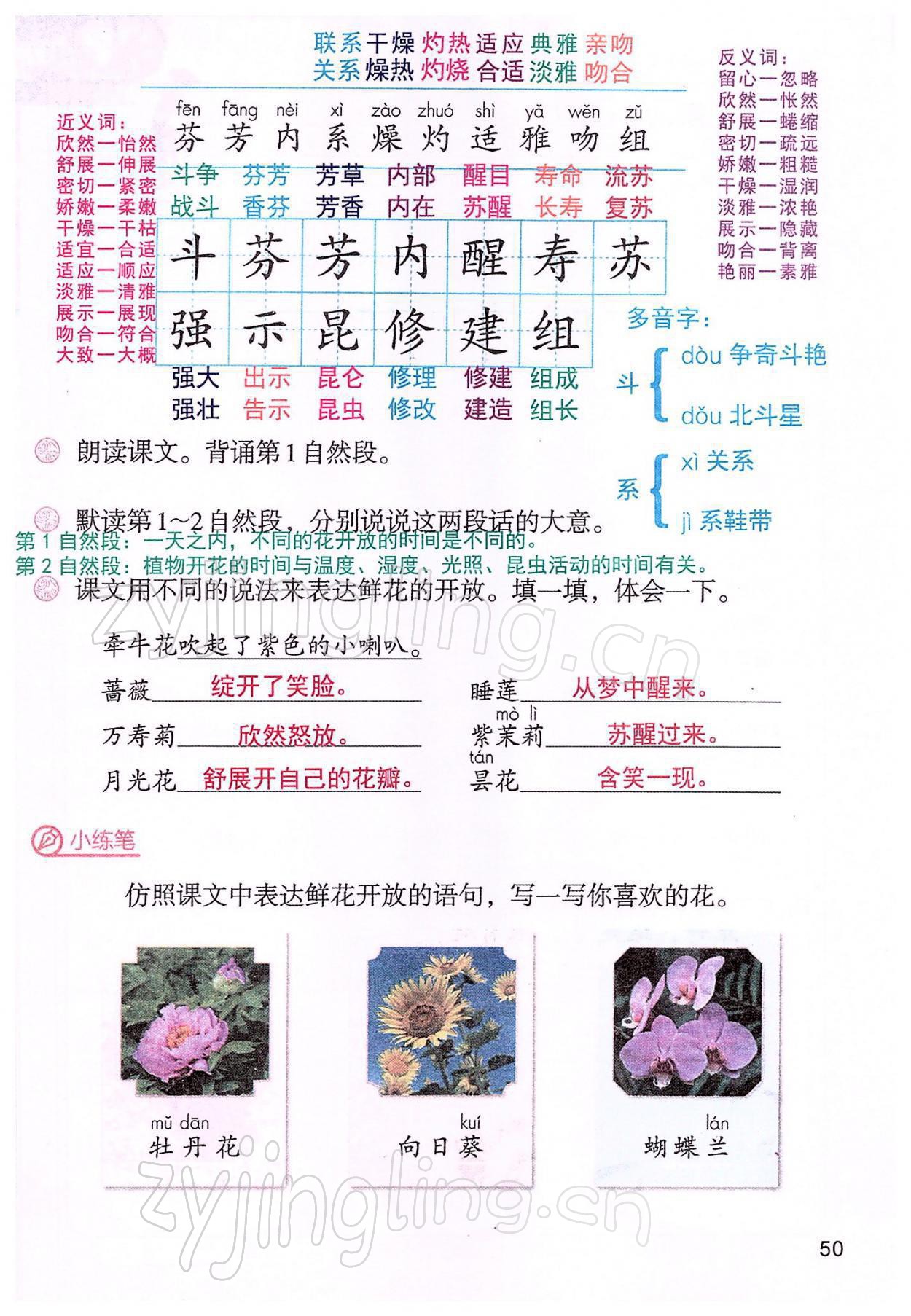 2022年教材课本三年级语文下册人教版参考答案第50页