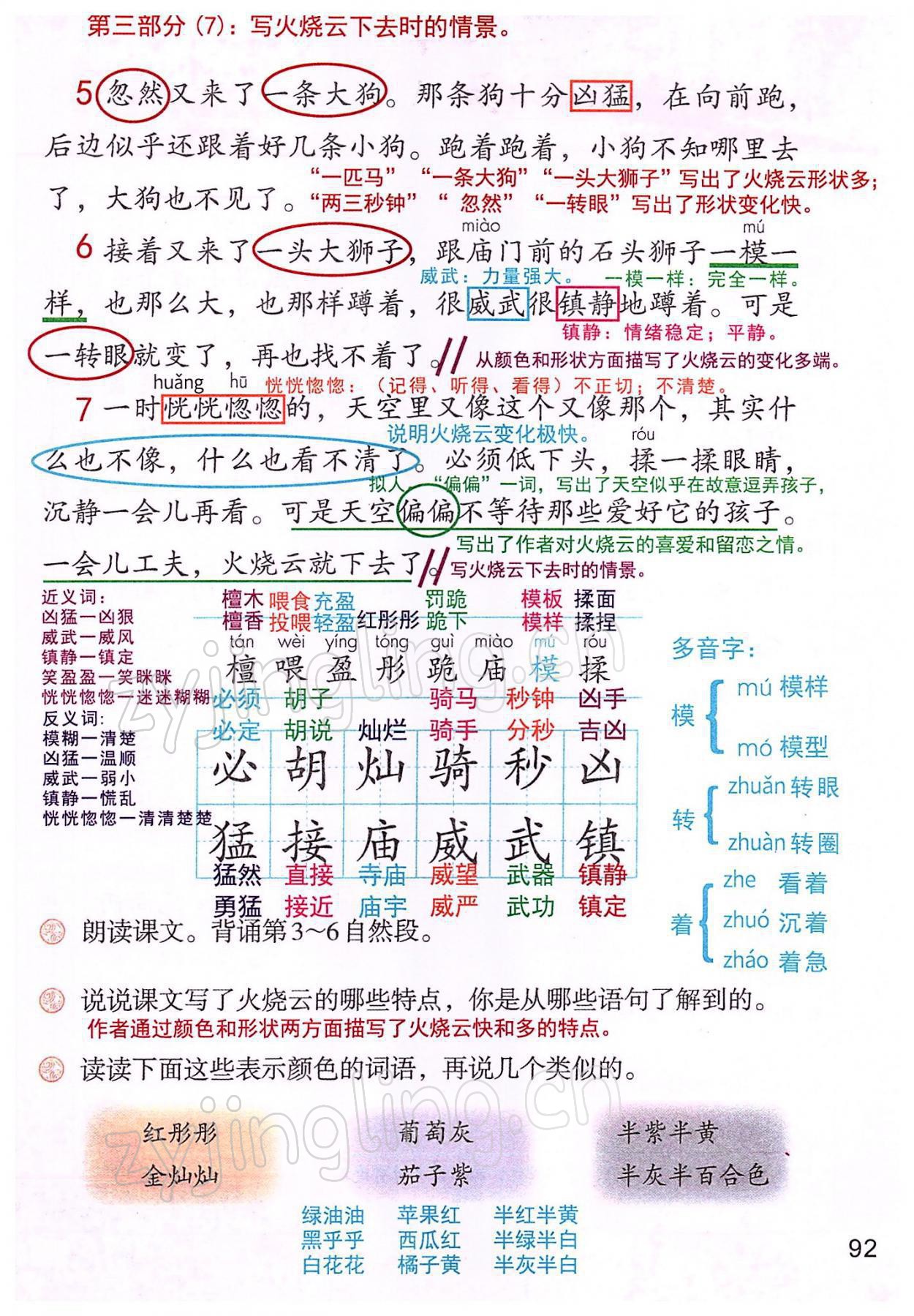 2022年教材课本三年级语文下册人教版参考答案第92页