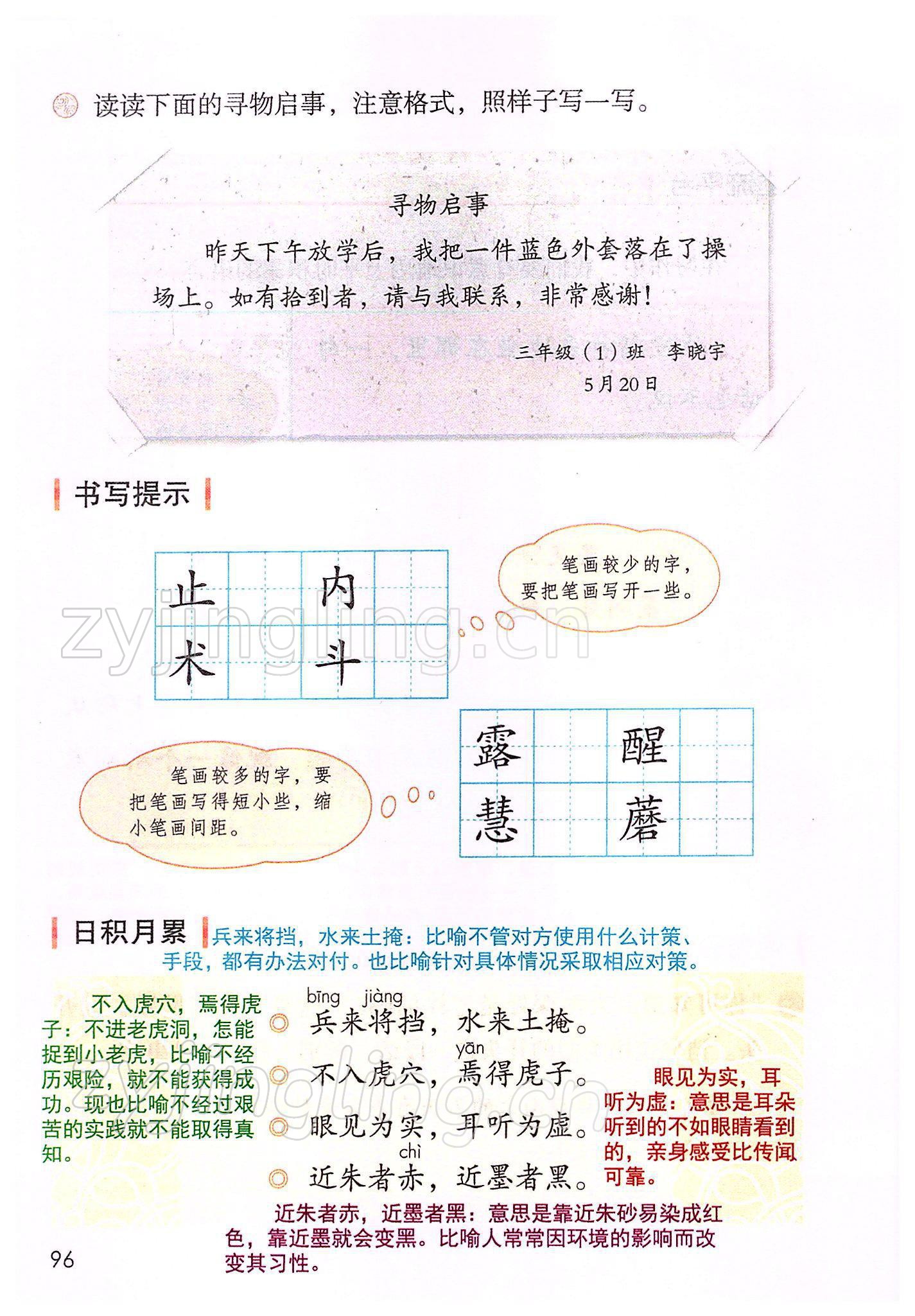 2022年教材课本三年级语文下册人教版参考答案第96页