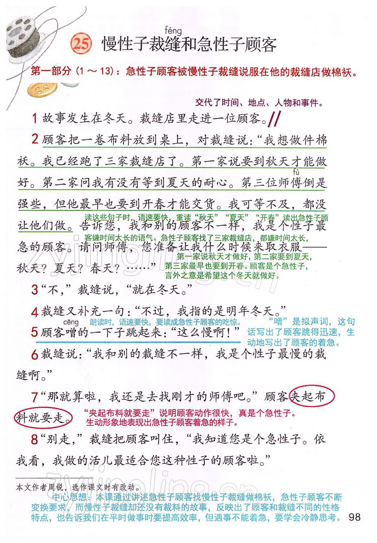 2022年教材课本三年级语文下册人教版参考答案第98页