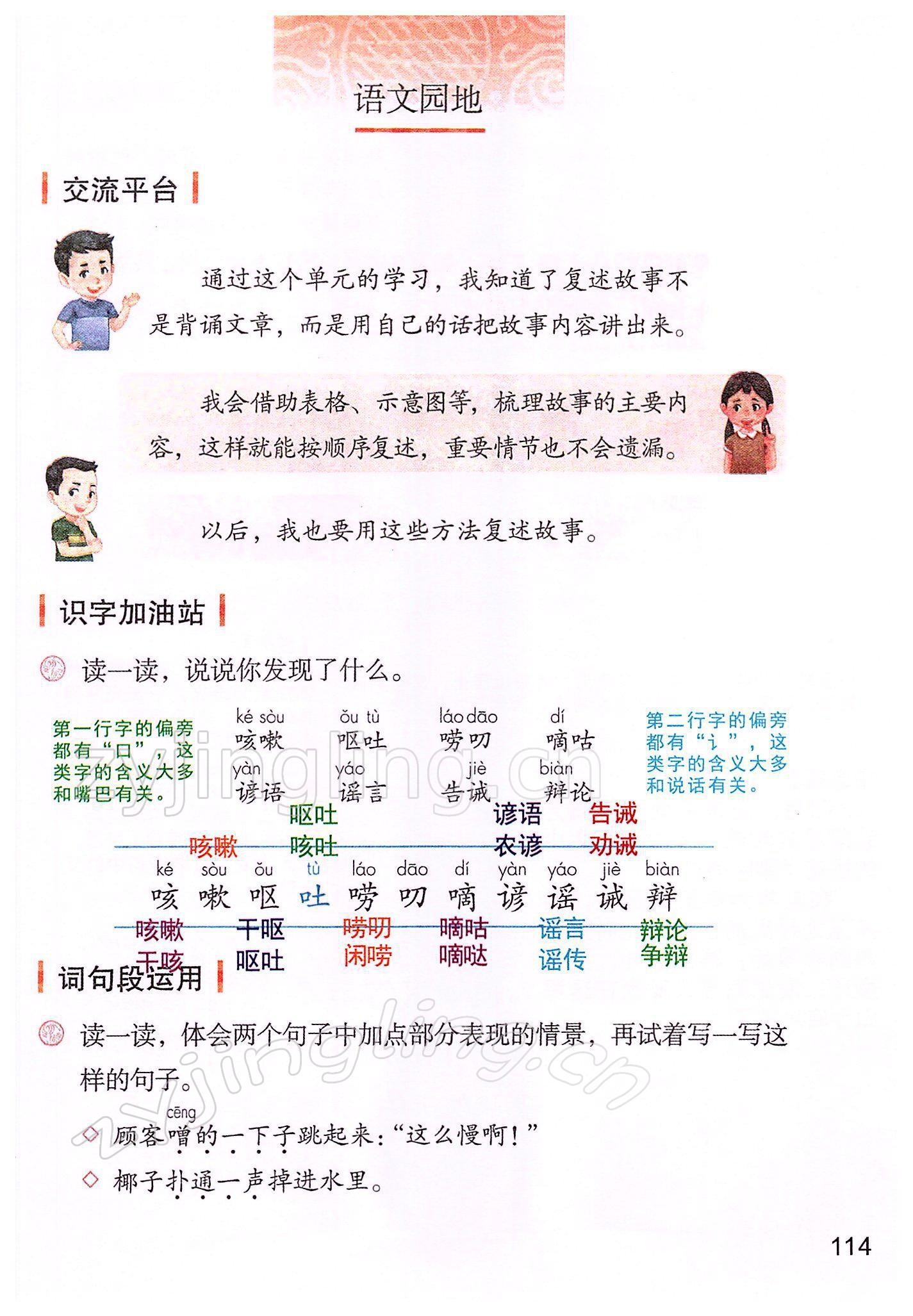 2022年教材课本三年级语文下册人教版参考答案第114页