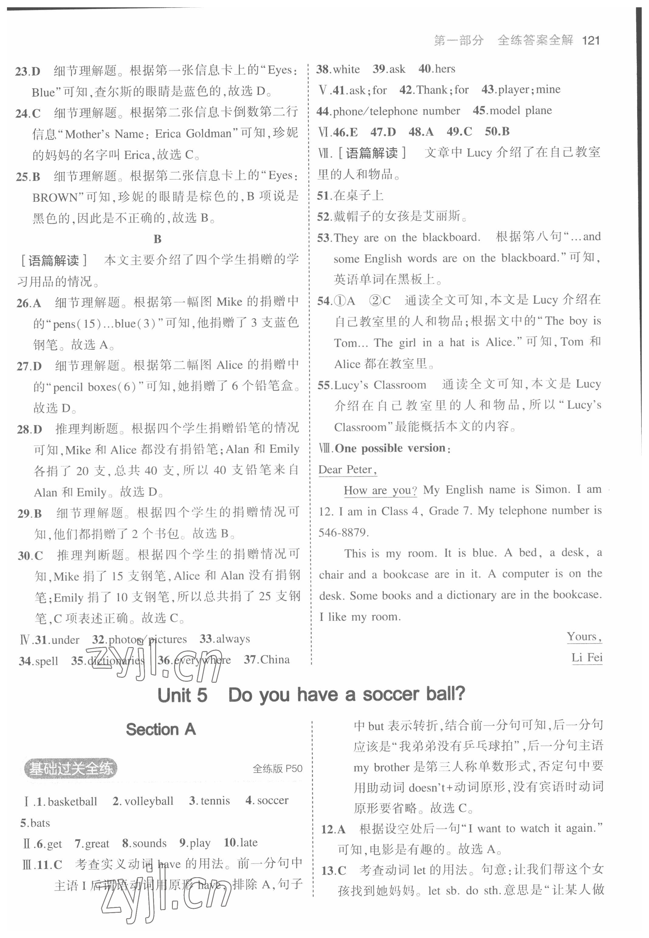2022年5年中考3年模拟七年级英语上册人教版第19页