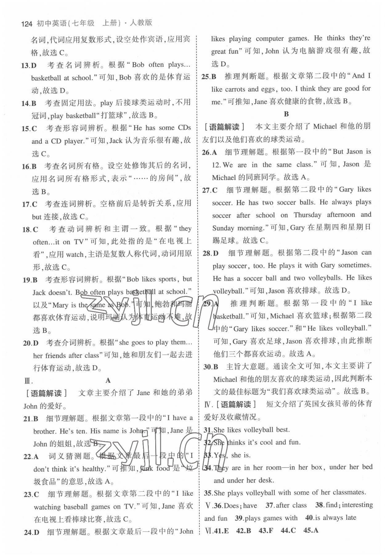 2022年5年中考3年模拟七年级英语上册人教版第22页