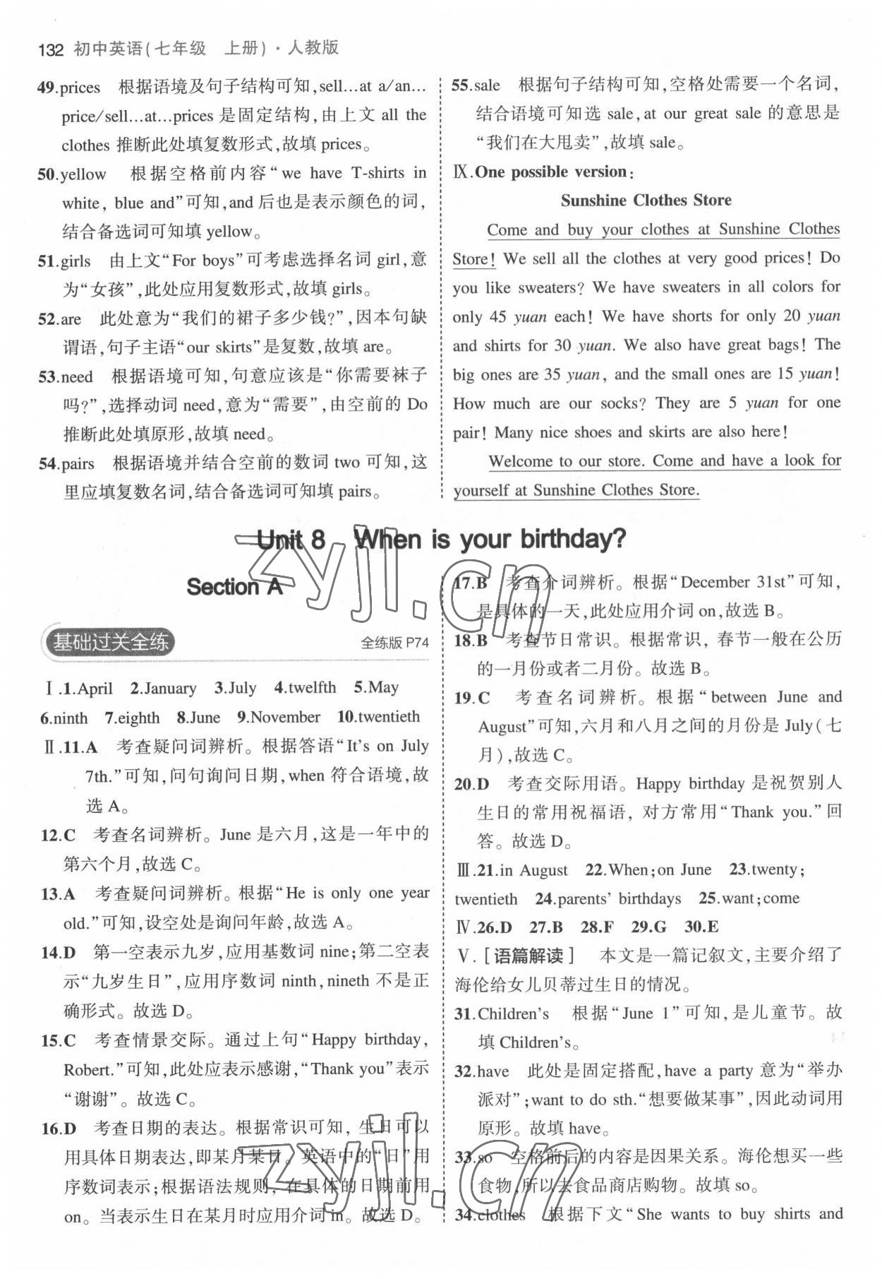 2022年5年中考3年模拟七年级英语上册人教版第30页