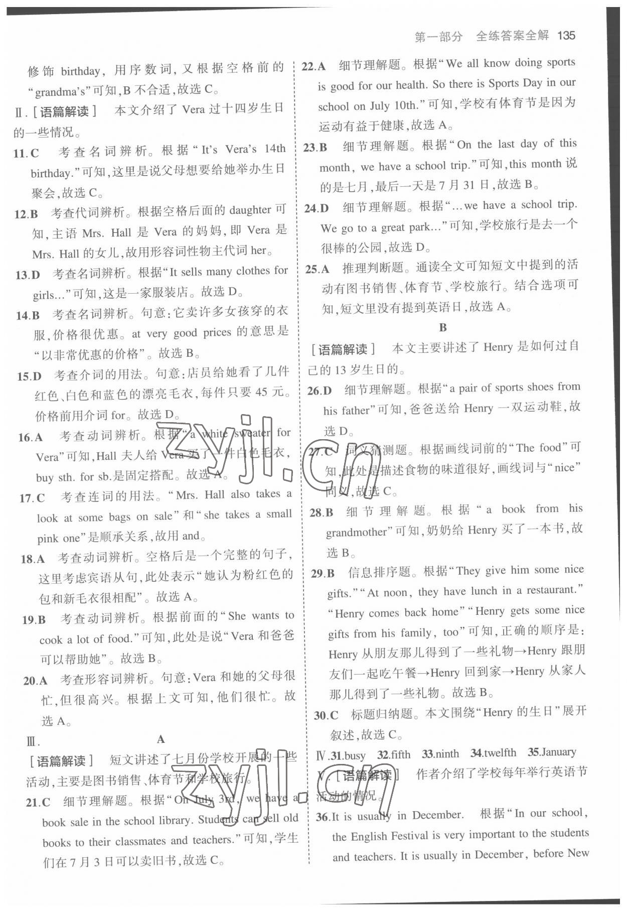 2022年5年中考3年模拟七年级英语上册人教版第33页