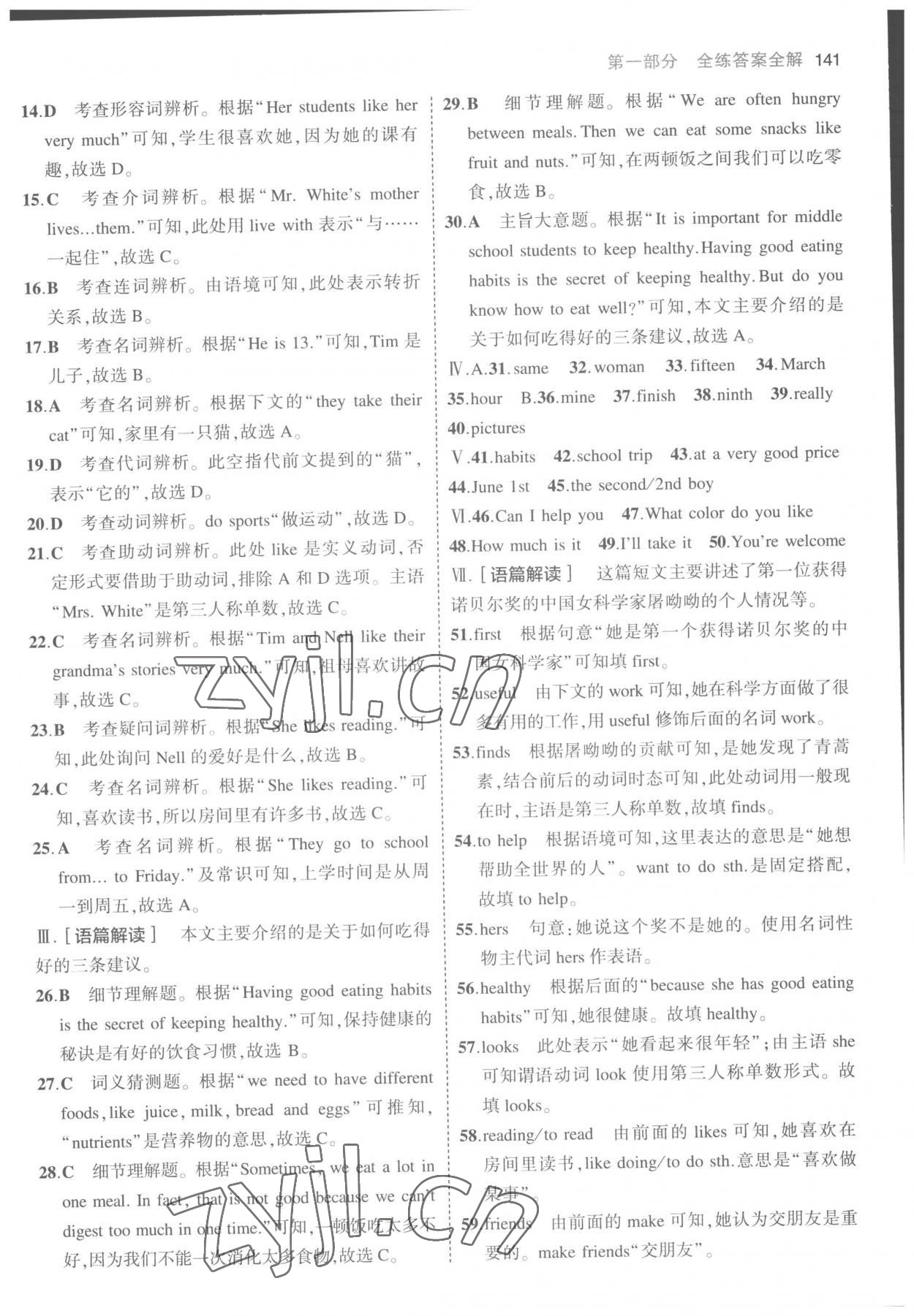 2022年5年中考3年模拟七年级英语上册人教版第39页