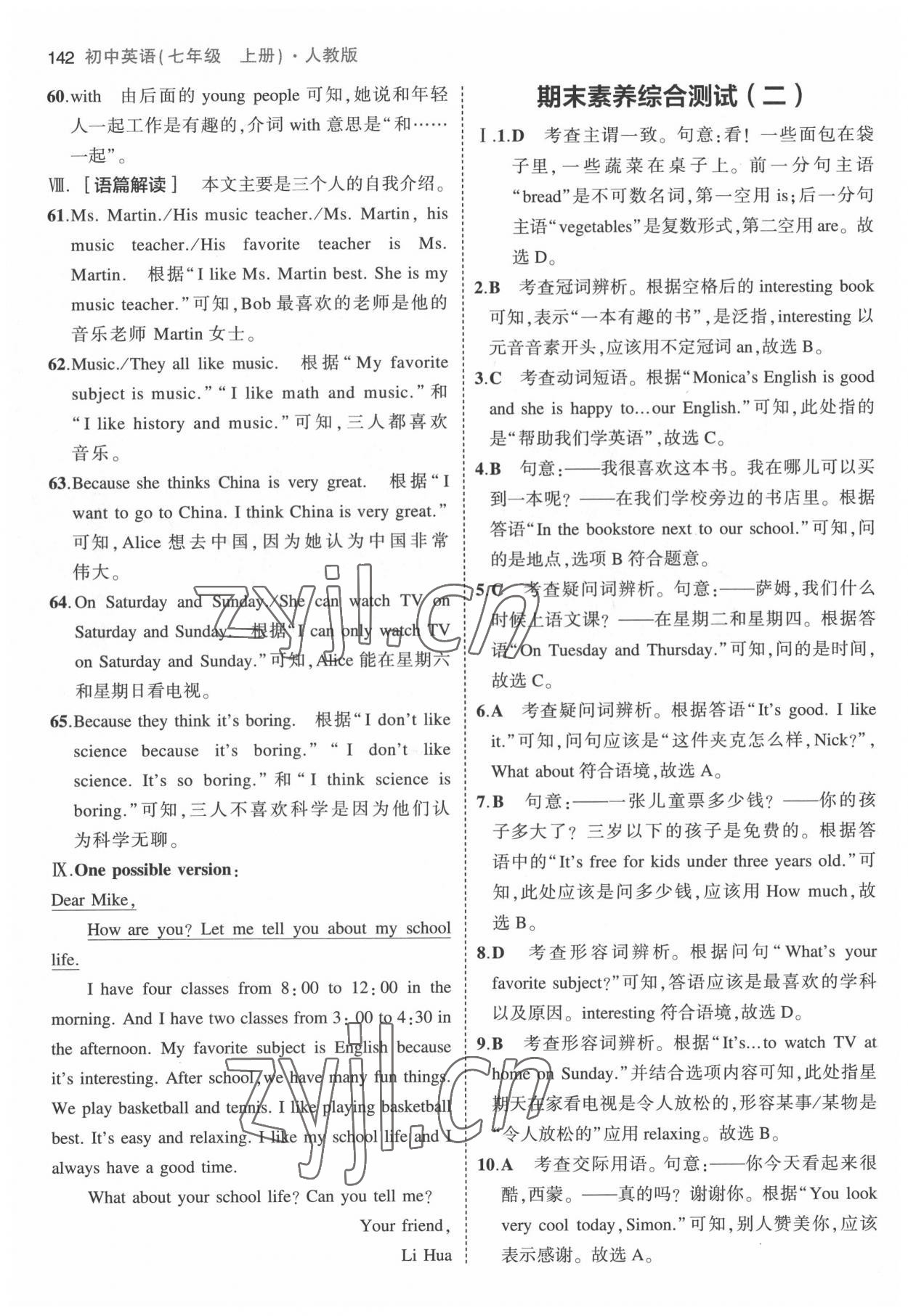2022年5年中考3年模拟七年级英语上册人教版第40页