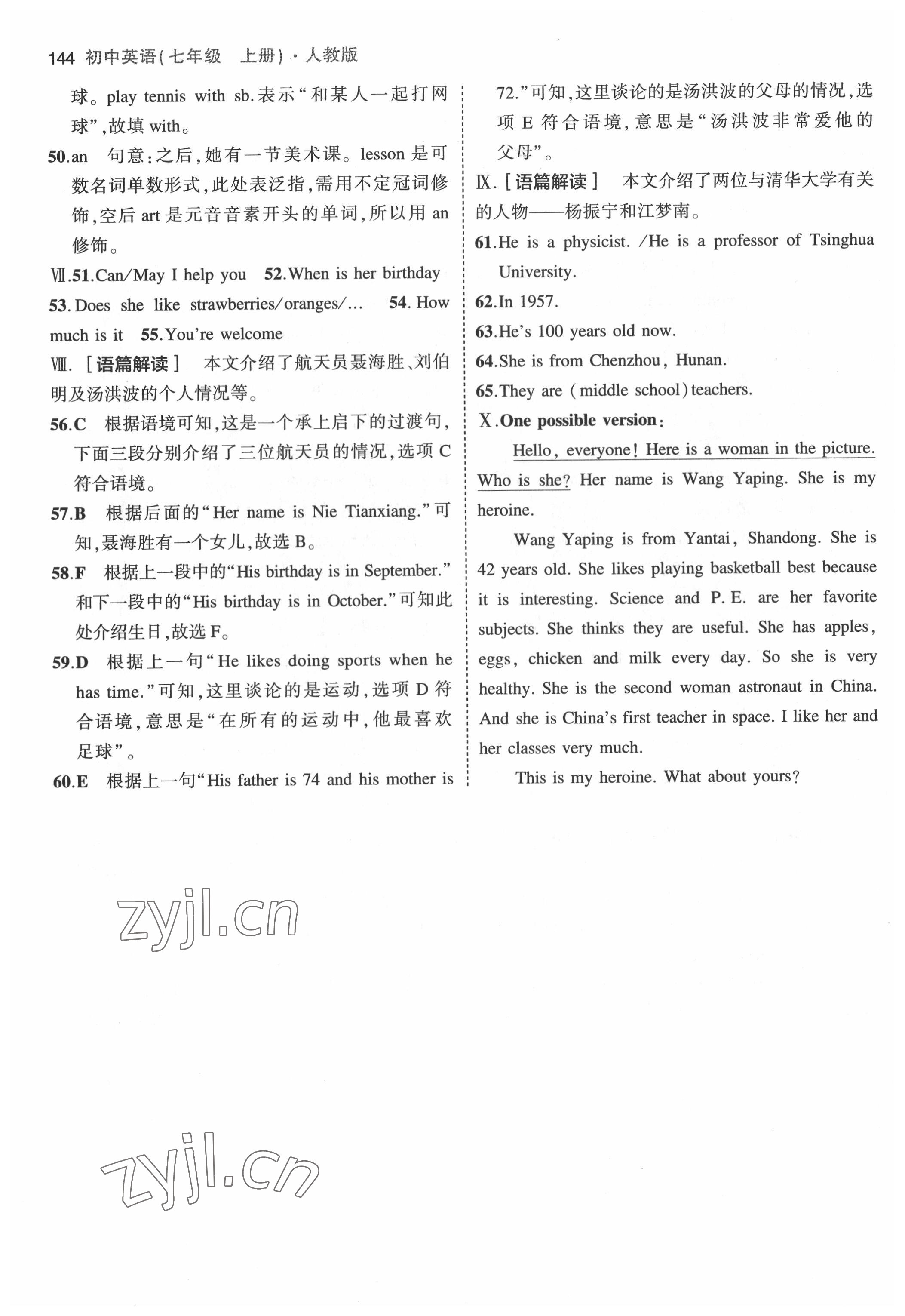 2022年5年中考3年模拟七年级英语上册人教版第42页