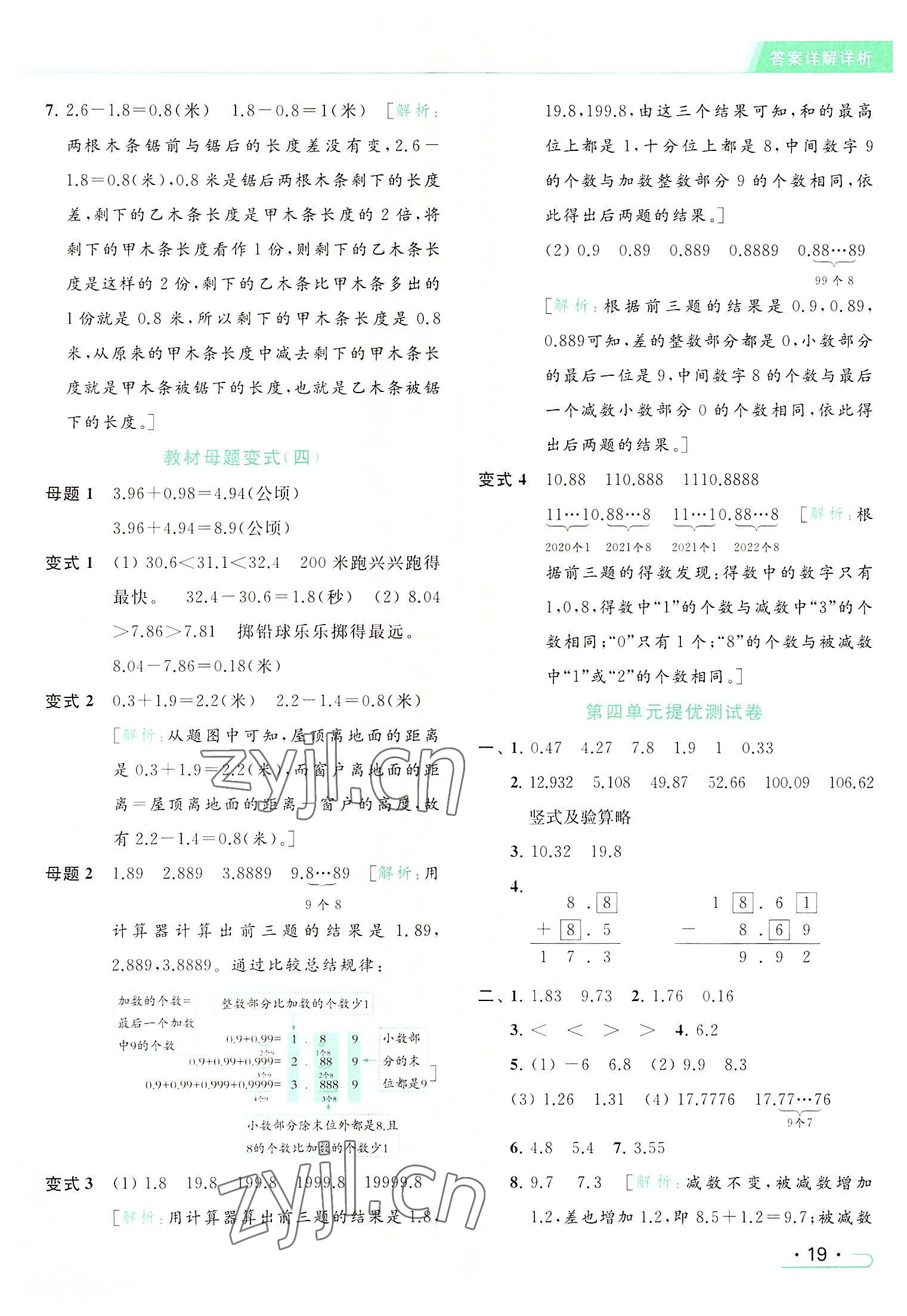 2022年亮点给力提优课时作业本五年级数学上册江苏版参考答案第19页