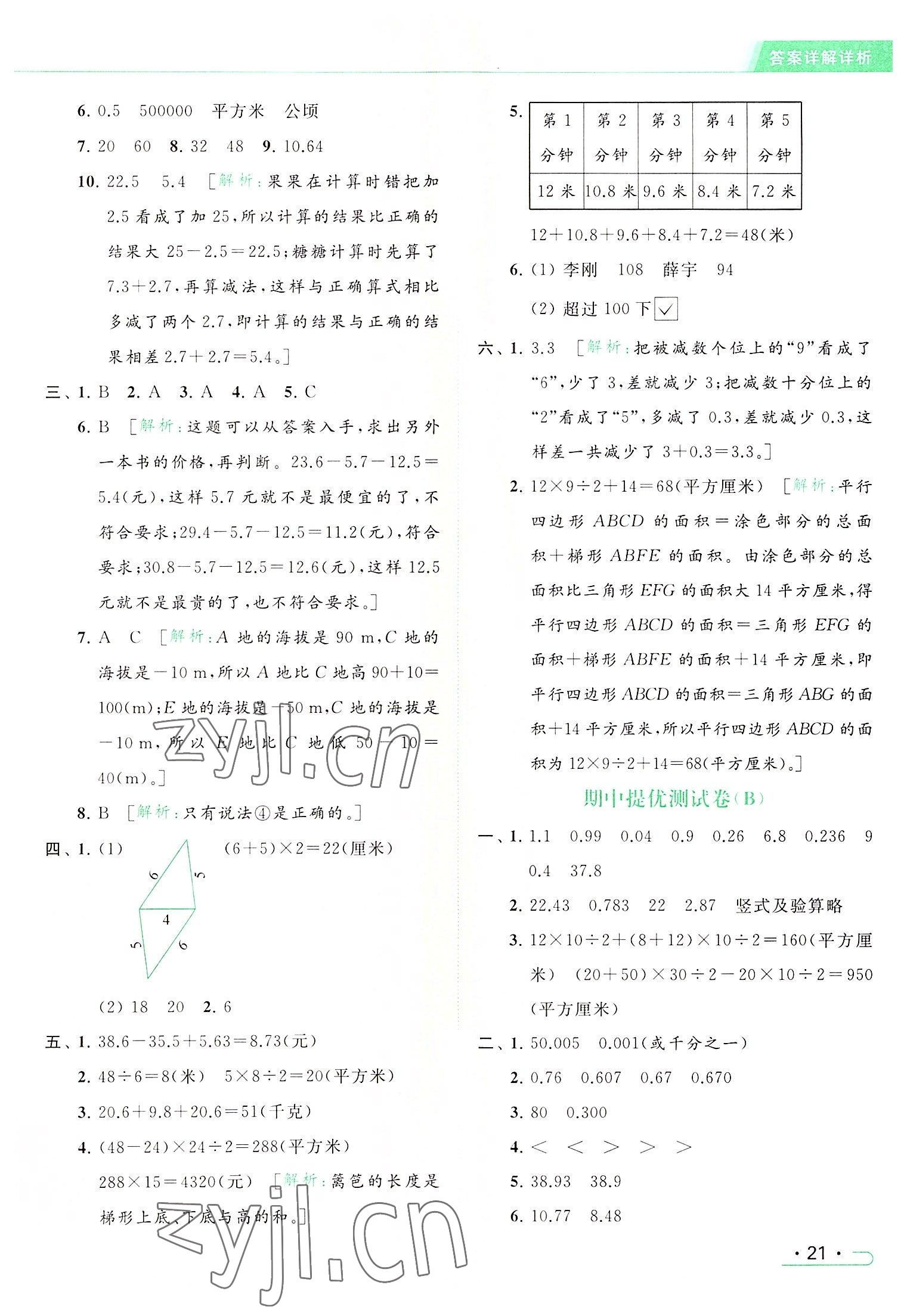 2022年亮点给力提优课时作业本五年级数学上册江苏版参考答案第21页
