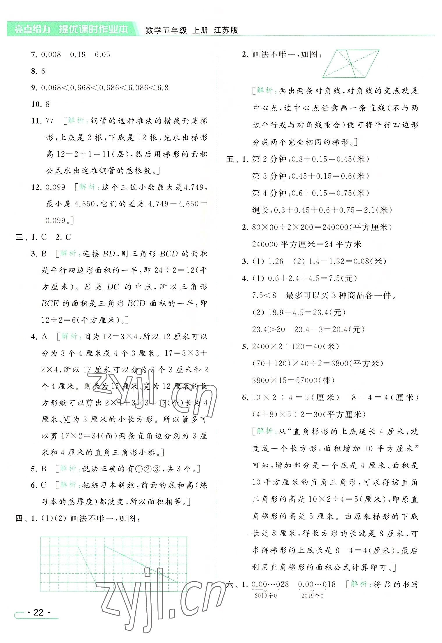 2022年亮点给力提优课时作业本五年级数学上册江苏版参考答案第22页