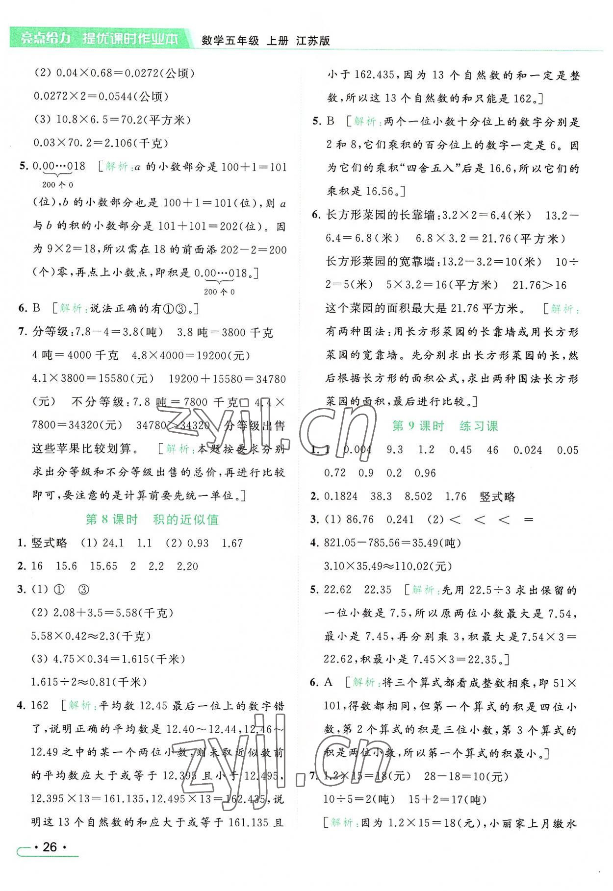 2022年亮点给力提优课时作业本五年级数学上册江苏版参考答案第26页